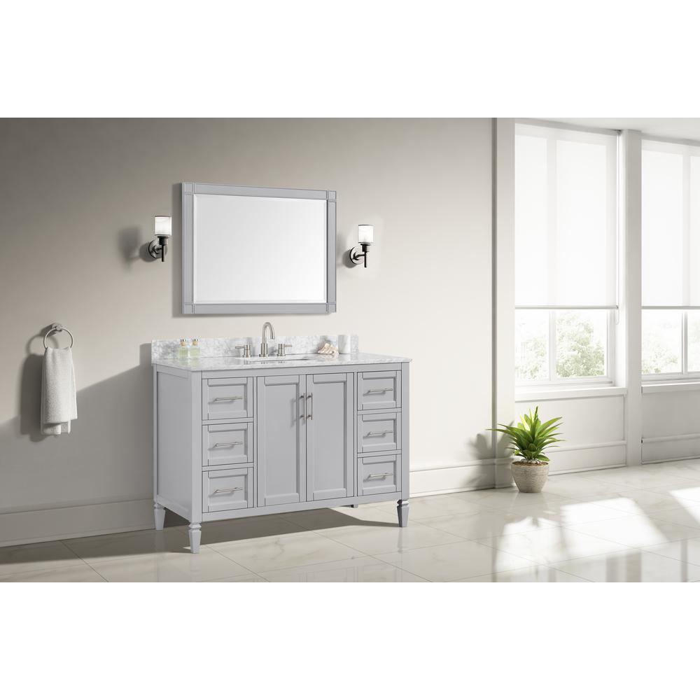 The Stockham 48 in. cabinet brings beauty to your bathroom. Corner blocking and a solid wood frame ensure durability. The Chilled Gray finish, brushed nickel hardware, and flat panels provide tasteful details that will complement multiple design decors. Pair it with the top of your choice and the matching mirror to create the cornerstone of your bathroom.