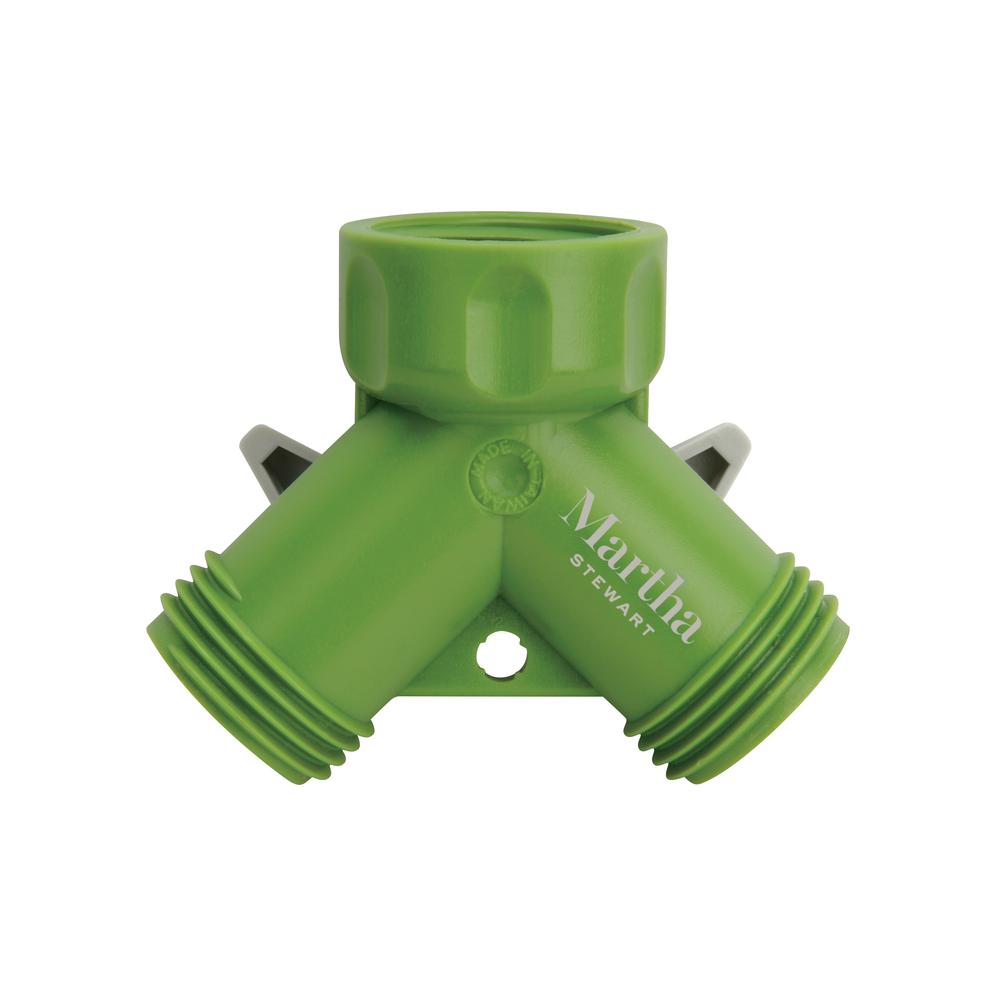America's favorite garden guru has a simple solution to split your single outdoor spigot 2 ways with just 1 garden hose tap adapter. Martha's 2-way Garden Hose Tap Adapter attaches quickly and easily to a standard outdoor spigot to control up to 2 hoses and accessories. Split your tap your way - the 2 branched valves include adjustable flow control with individual on/off knobs for precise zone control. No more juggling sprinklers, nozzles and accessories. Keep your sprinklers connected and stay dry while you water your plant beds with just a twist of your wrist. Stop switching out accessories - Martha provides the control you need to water your way today.