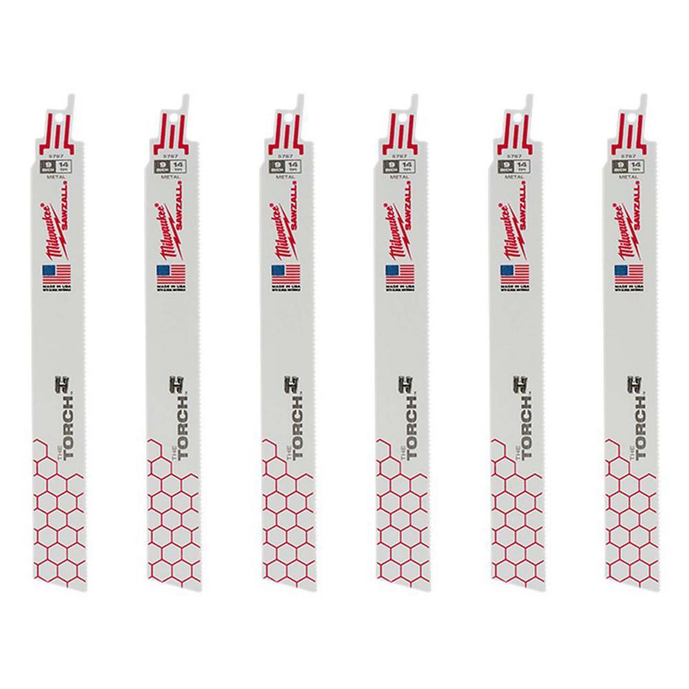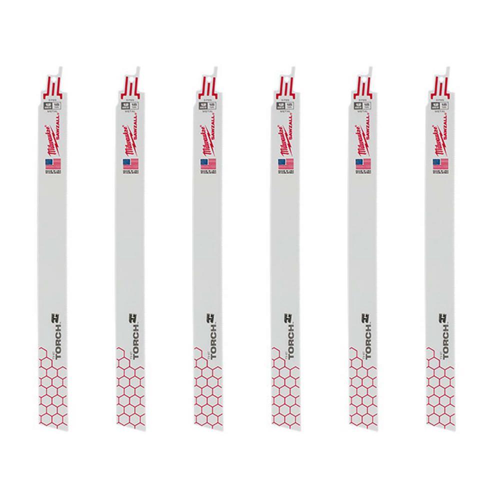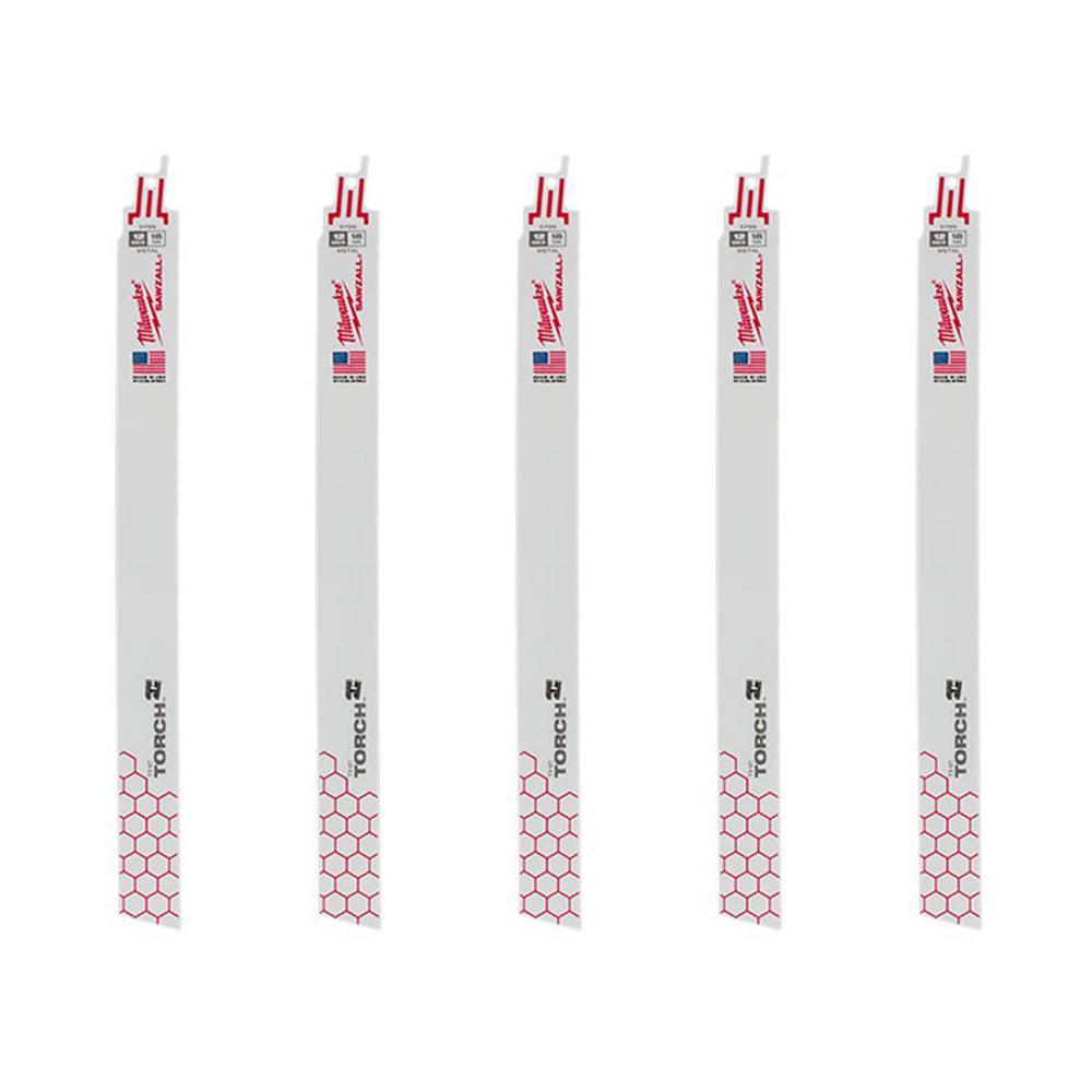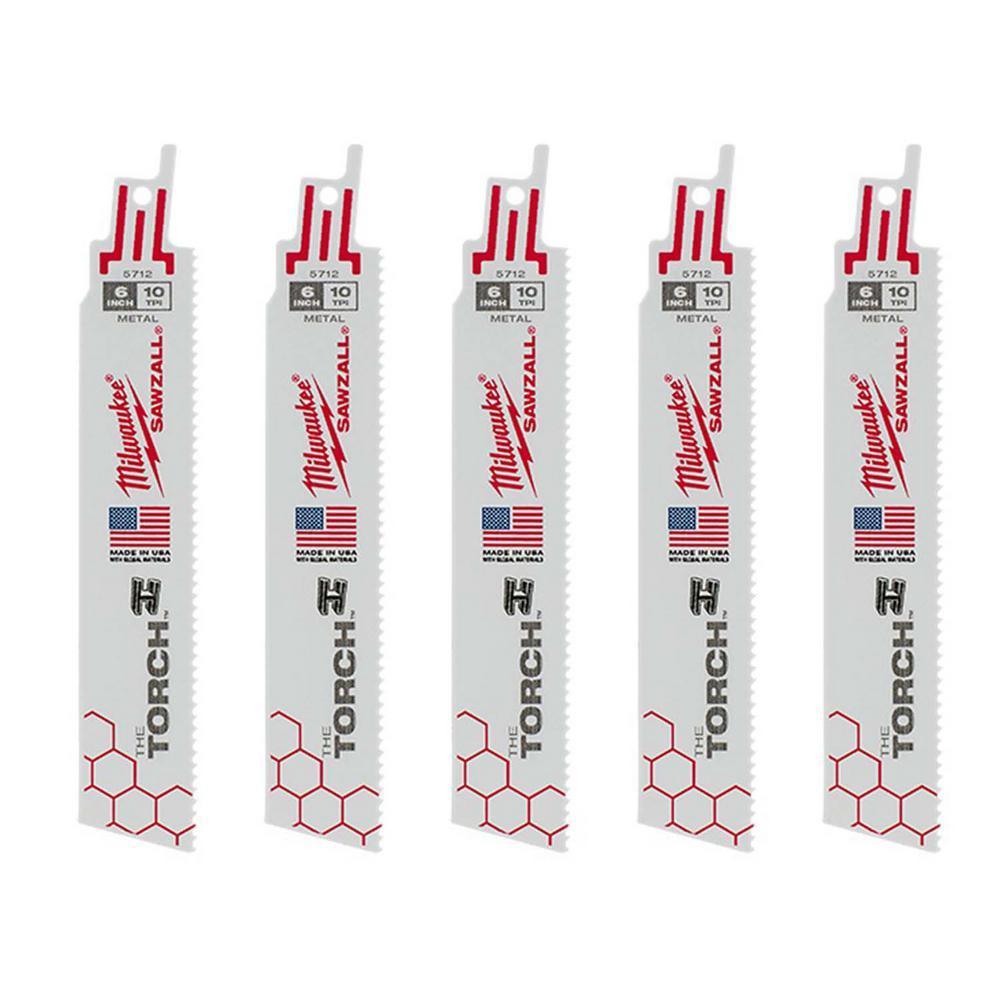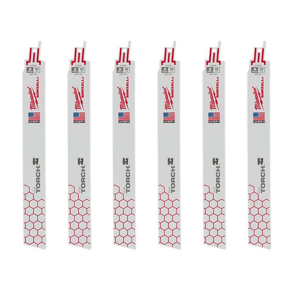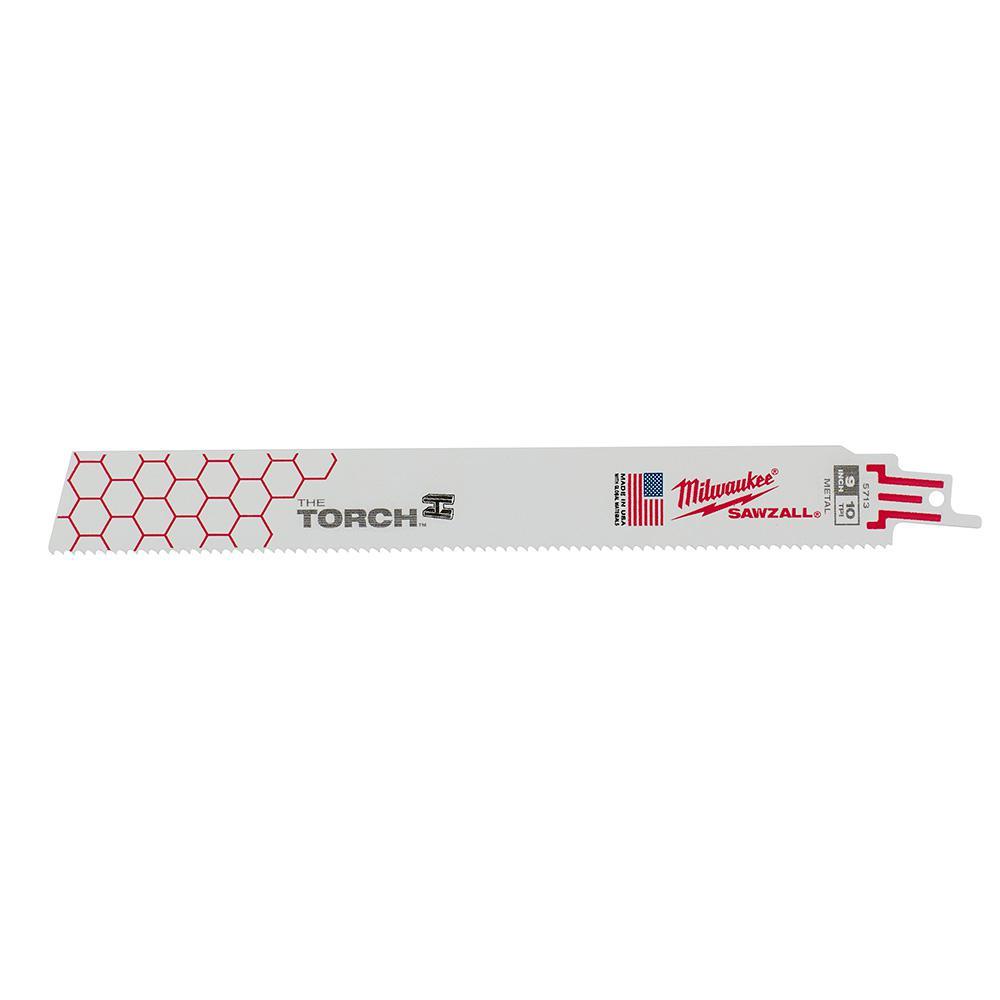 The 9 in. 10 TPI Torch Thick Metal Cutting SAWZALL Reciprocating Saw Blades (5-Pack) are designed with longevity and durability in mind. Tough Neck technology prevents tang breakage, making these the most durable SAWZALL blades available. The Grid Iron pattern provides extra rigidity, making these blades resistant to buckling. These blades are perfect for making precise, powerful cuts. With Grid Iron, tough neck ribs, and an optimal tooth design, these blades have a longer lifespan than standard bi-metal blades. The thicker, sturdier body ensures minimal fracturing and bending, for maximum durability. These blades feature a 1/2 in. universal tang and 1 in. tall body, perfect for demolition work. Each pack contains 5 blades.