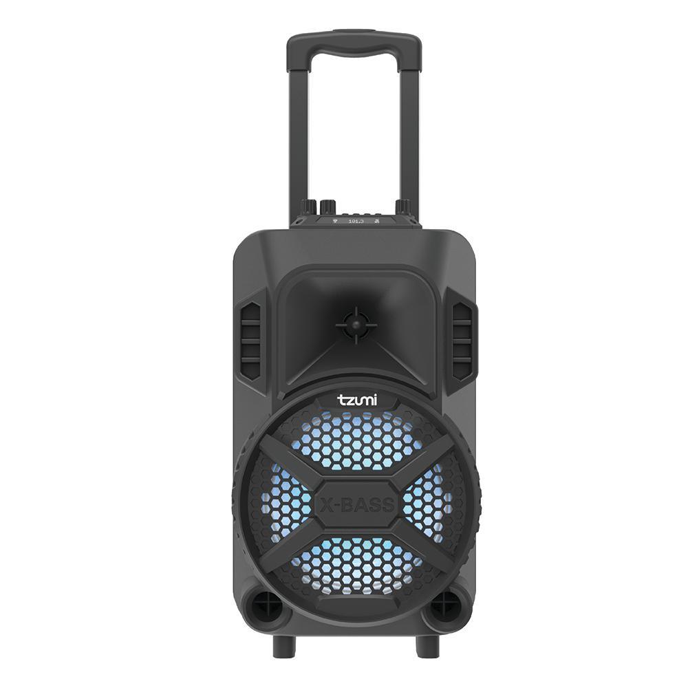 The Megabass speaker can be your smart companion anywhere ideal for beach, garden, and pool parties it is a great way to make your music heard. The loudspeaker includes a subwoofer that enables you to enjoy high quality audio making it a great companion both indoors and outdoors. Designed to widely disperse sound the loudspeaker includes wheels and transports easily. Great for karaoke parties it includes a wired microphone that allows you to sing along with friends. Additional features include Bluetooth function, a 3.5mm aux jack that can easily be connected to a phone or computer for chest-thumping loud music, micro SD card and USB support along with FM radio function.