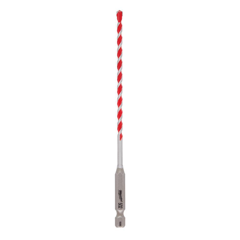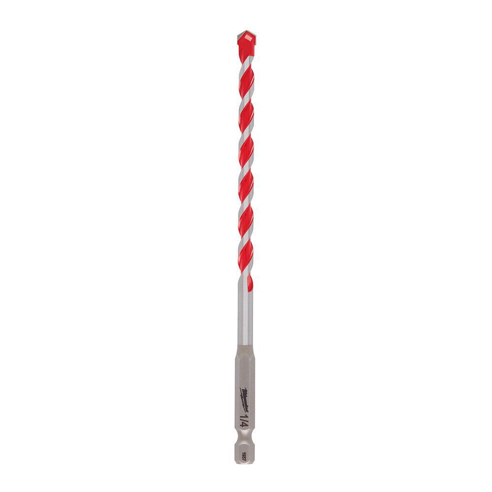 The Milwaukee 1/2 in. x 4 in. x 6 in. SHOCKWAVE Carbide Hammer Drill Bit uses sharpened carbide to deliver up to 5x longer life in concrete and up to 2x faster drilling into masonry materials. Engineered with a precision ground tip, these bits deliver faster starts and less walking in concrete, brick and block. The carbide-tipped masonry drill bits' wide flute design removes dust faster, reducing heat and delivering more holes per charge. Equipped with a 1/4 in. Hex Shank, Milwaukee SHOCKWAVE Carbide Hammer Drill Bits are the ideal solution for drilling in masonry materials with both impacts and hammer drills/drivers.