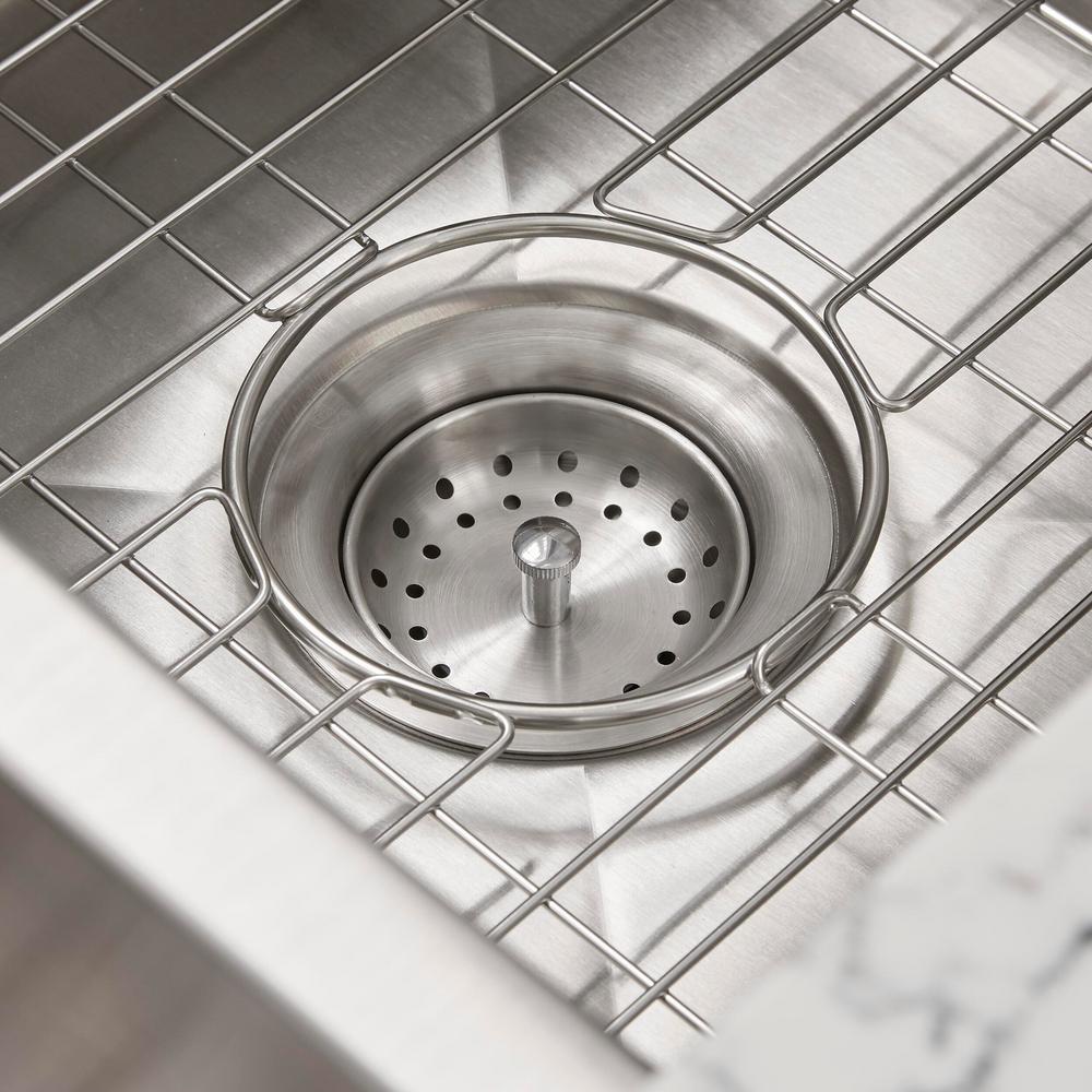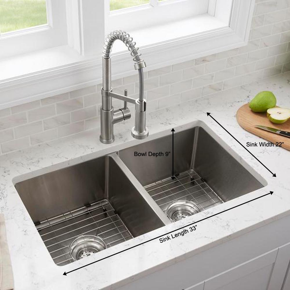 Glacier Bay All-In-One Dual Mount R15 Tight Radius Corner Kitchen Sink can be installed as either a top mount or under mount. Made of durable 18-Gauge brushed stainless steel, the tight radius corners provide an elegant appearance and easy cleaning. Sound insulation reduces waste disposal and water noise to help keep your kitchen quiet while you work.