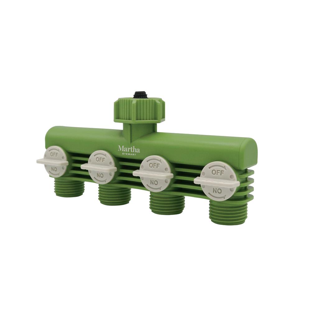 America's favorite garden guru has a simple solution to split your single outdoor spigot up to 4 ways with just 1 garden hose tap adapter. Martha's 4-way faucet splitter plus connector splitter attaches quickly and easily to a standard outdoor spigot to control up to 4 hoses and accessories for unparalleled zone control. Split your tap your way - the 4 branched valves include adjustable flow control with individual on/off knobs. No more juggling sprinklers, nozzles and accessories. Keep your sprinklers connected and stay dry while you water your plant beds with just a twist of your wrist. Stop switching out accessories - Martha provides the precise control you need to water your way today.
