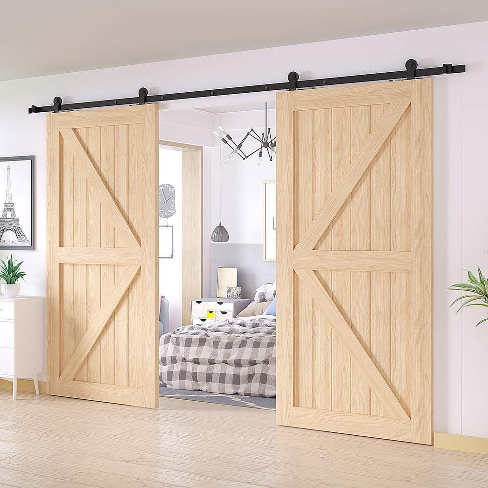 10 ft. /120 in. Top Mount Sliding Barn Door Hardware Track Kit for Double Doors with Non-Routed Floor Guide