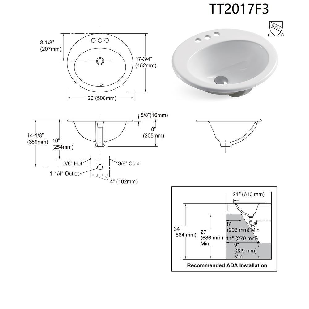• Classic self rimming round shape creates timeless design in a guest bath, master bath or powder room