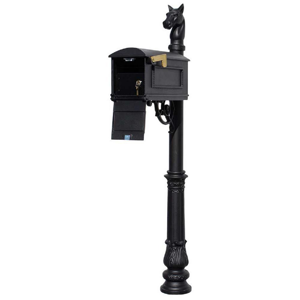 Lewiston Bronze Post Mount Locking Insert Mailbox with decorative Ornate Base and Horsehead Finial