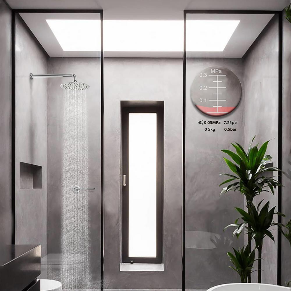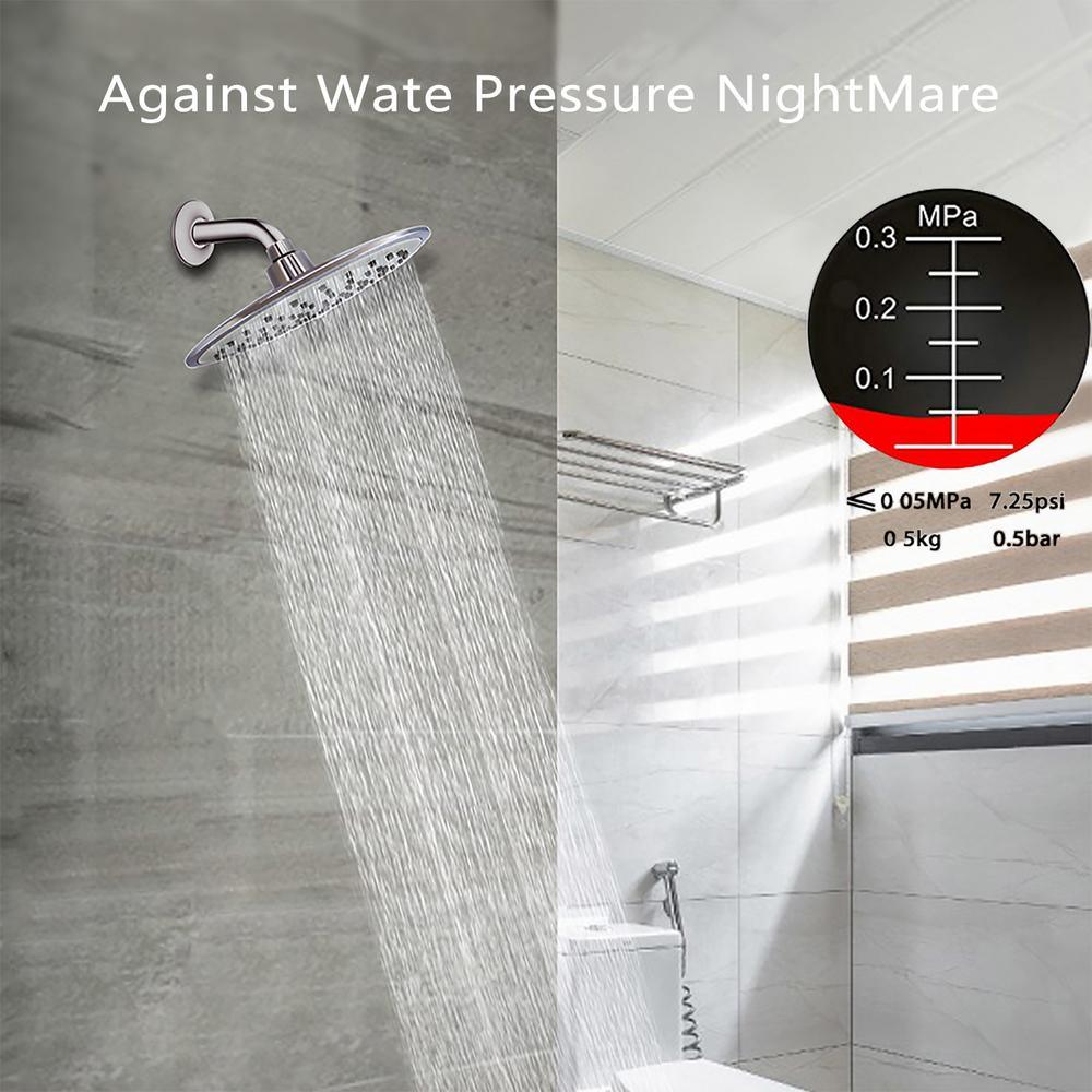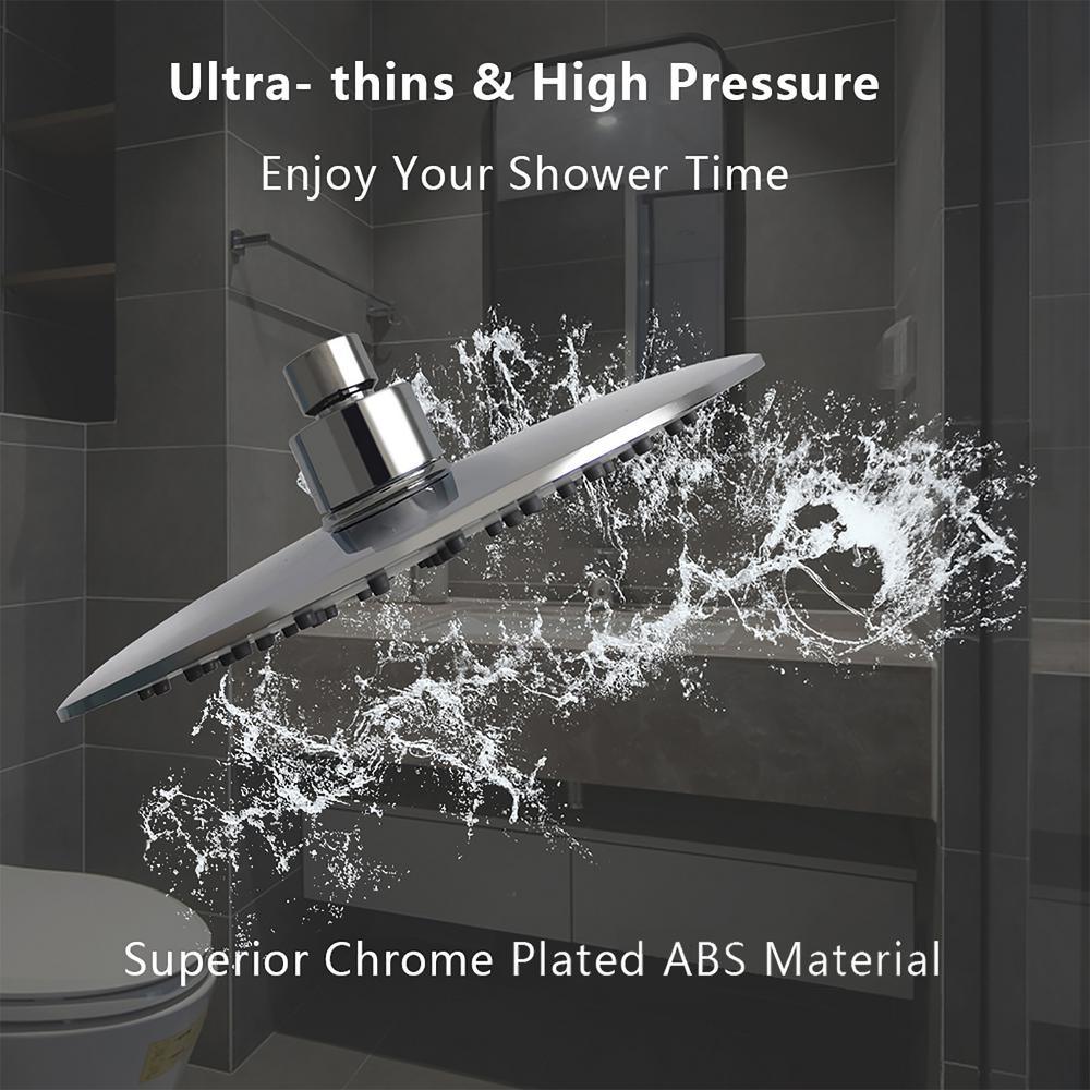 • High pressure showerhead: 8 in. large coverage rain shower head, ultra-thin design, the best pressure boosting provided, awesome shower experience even at low water flow and pressure