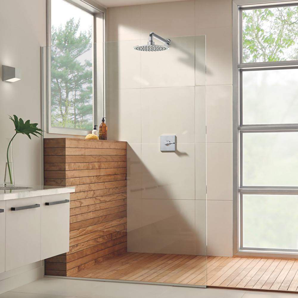 This 1-Spray 8 in. Round Shower Head in Chrome features a modern and unique design that will complement a variety of contemporary bathroom decor. Simple to use and maintain, the showerhead features rub-clean spray nozzles that help prevent mineral build-up and easily wipe clean. This lustrous collection works seamlessly with today's lifestyles, providing you style and on-demand water flexibility to enhance your showering experience.