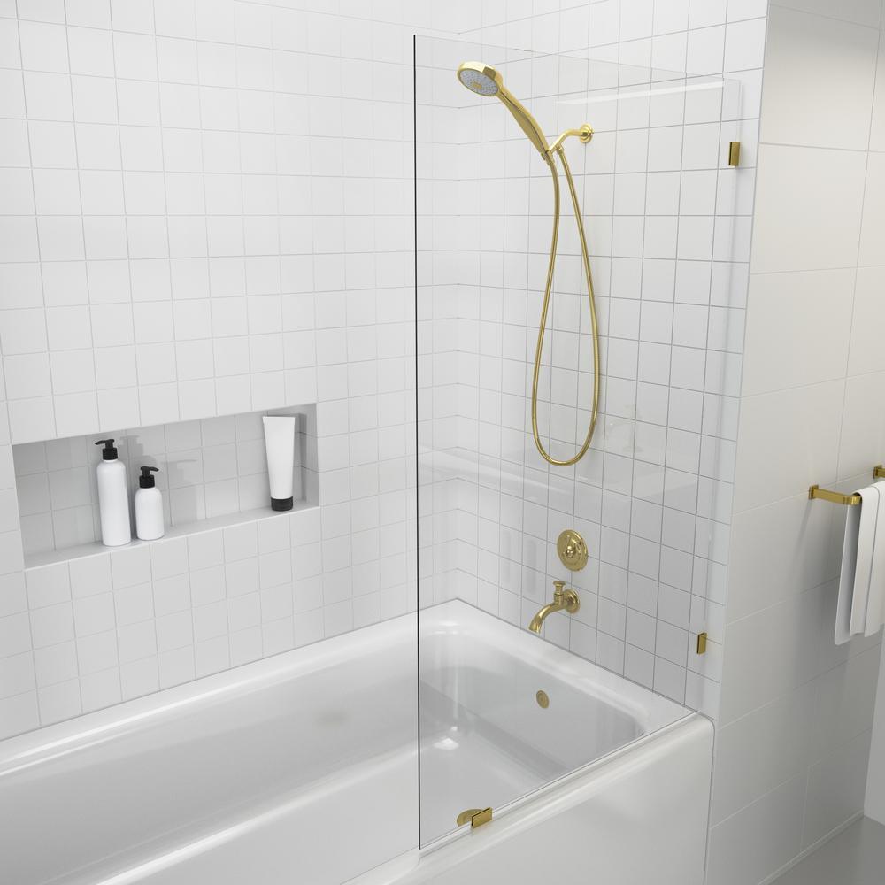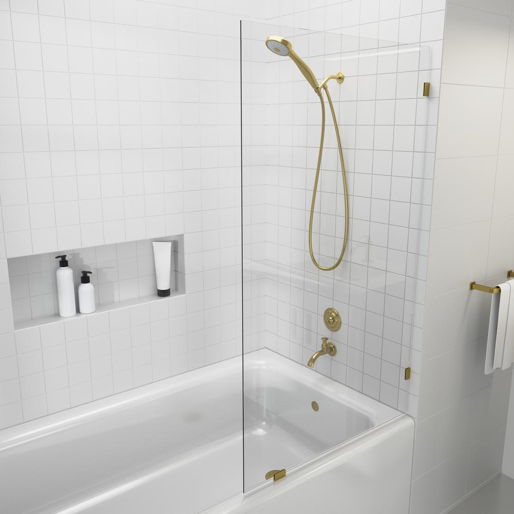 34 in. x 58 in. Frameless Fixed Panel Bathtub Door in Matte Black without Handle