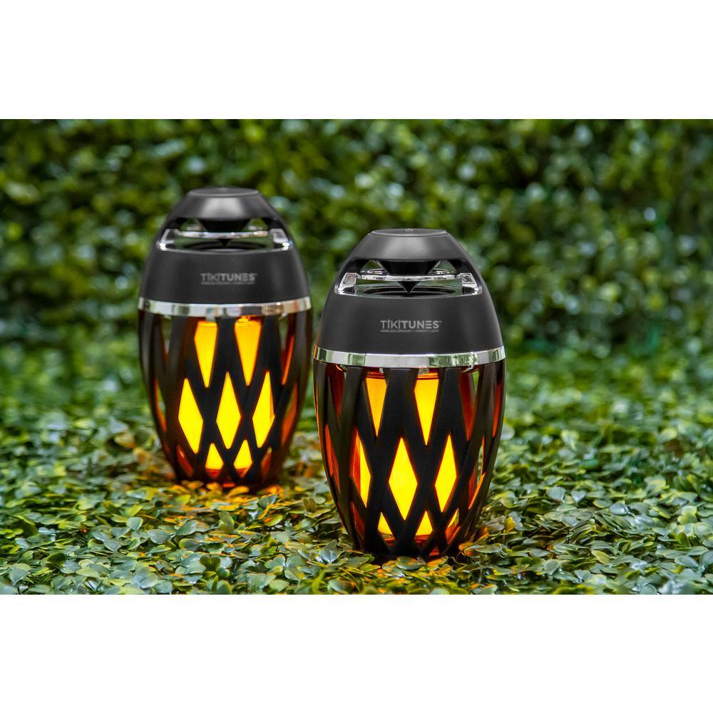 Enjoy powerful, quality sound while playing your favorite tunes with this TikiTunes 2-Pack of Bluetooth speakers. Each 5-Watt speaker offers 6-hours of continuous playtime from any Bluetooth-compatible device with its built-in 2000 mAh rechargeable battery (Micro-USB Cables included). Connect both speakers using dual-sync capabilities from a maximum distance of 30 ft. to enable True Wireless Stereo (TWS) Technology. The IP65 water-resistant and dust-resistant rating is durable for both indoor and outdoor use. The warm LED ambient light emits a flickering, atmospheric light providing the perfect ambiance for evenings spent outdoors or a cozy night in.