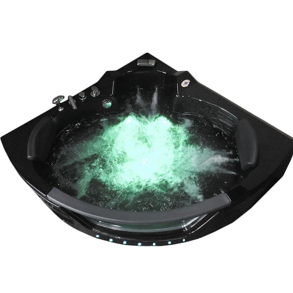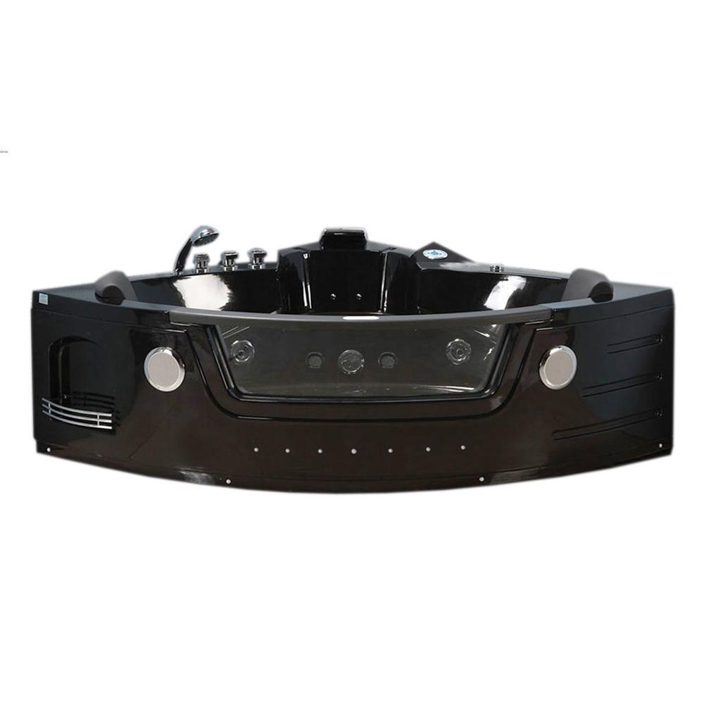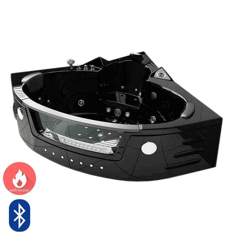 Majestic with Heater and Bluetooth 59 in. Acrylic Center Drain Corner Alcove Whirlpool Bathtub in Black