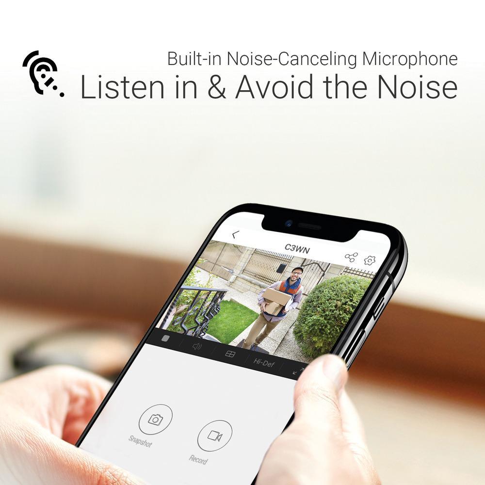 Listen in and avoid the noise with a built-in noise-canceling microphone; clear audio reception up to 16 ft.