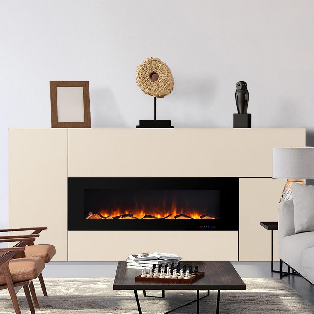 60 in. Wall-Mount Electric Fireplace in Black
