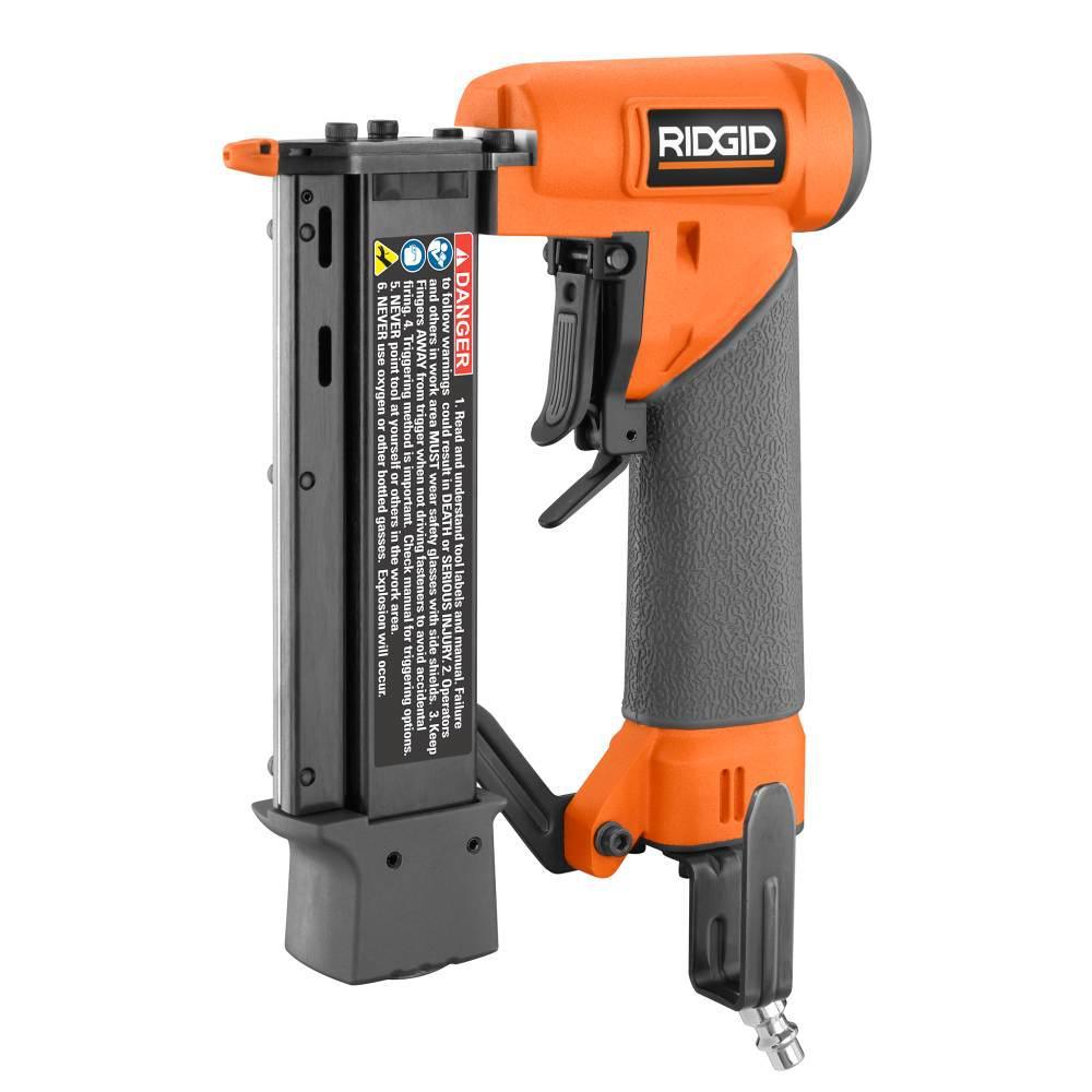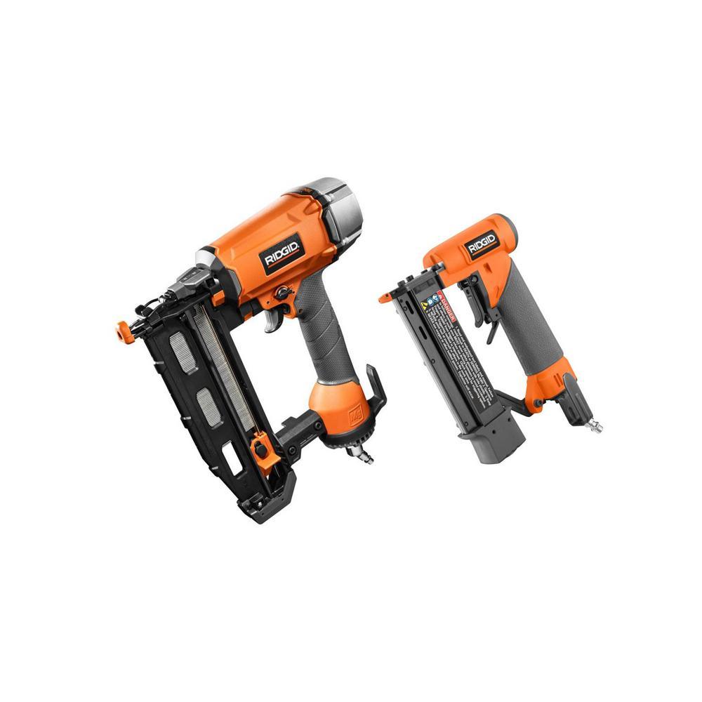RIDGID introduces the 16-Gauge 2-1/2 in. Straight Finish Nailer with 23-Gauge 1-3/8 in. Headless Pinner. The 16-Gauge 2-1/2 in. Straight Finish Nailer from RIGID comes standard with the FastenEdge Technology which gives you that extra edge on any jobsite. The Straight Finish Nailer has hex grip over molding, an oil-less motor, an ACCU-drive tip design, and no-mar pads. A powerful motor drives 2-1/2 in. finish nails into solid oak. Tool-free jam access allows you to easily clear jams. The Headless Pinner is a great choice for attaching molding, pinning joints and performing trim work, finish carpentry, and light wood assembly. This powerful nailer accepts 23-gauge headless pins measuring from 5/8 in. to 1-3/8 in. and features a long list of convenient features, including a depth-of-drive adjustment mechanism, a no-mar nose pad and a quick-connect swivel connector. An internal piston catch delivers consistent driving power, and a reversible belt hook allows you to keep the nailer within arm's reach when it's not in use. Backed by the RIDGID Industry Leading Lifetime Service Agreement, this kit includes the 16-Gauge 2-1/2 in. Straight Finish Nailer, the 23-Gauge 1-3/8 in. Headless Pinner, and operator's manuals.
