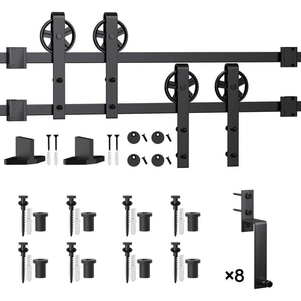 11 ft./132 in. Black Sliding Bypass Barn Door Hardware Track Kit for Double Doors with Non-Routed Floor Guide