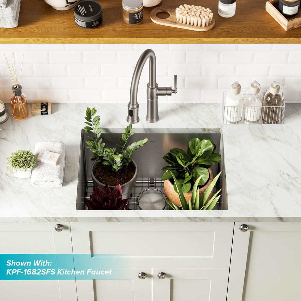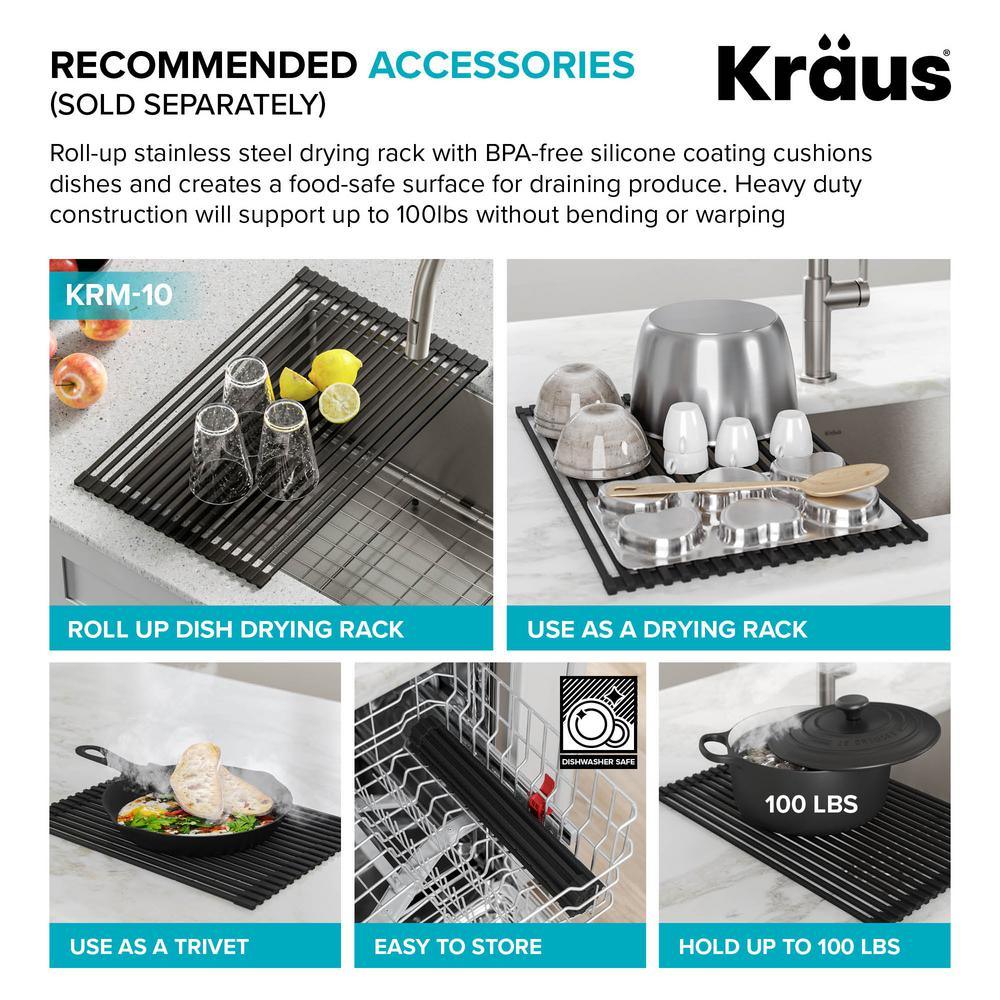 Heavy-duty 16-Gauge steel: constructed from proprietary KRAUS TRU16 – a heavy-duty, extra-thick real 16-Gauge stainless steel – for superior durability and resistance to dents and damage