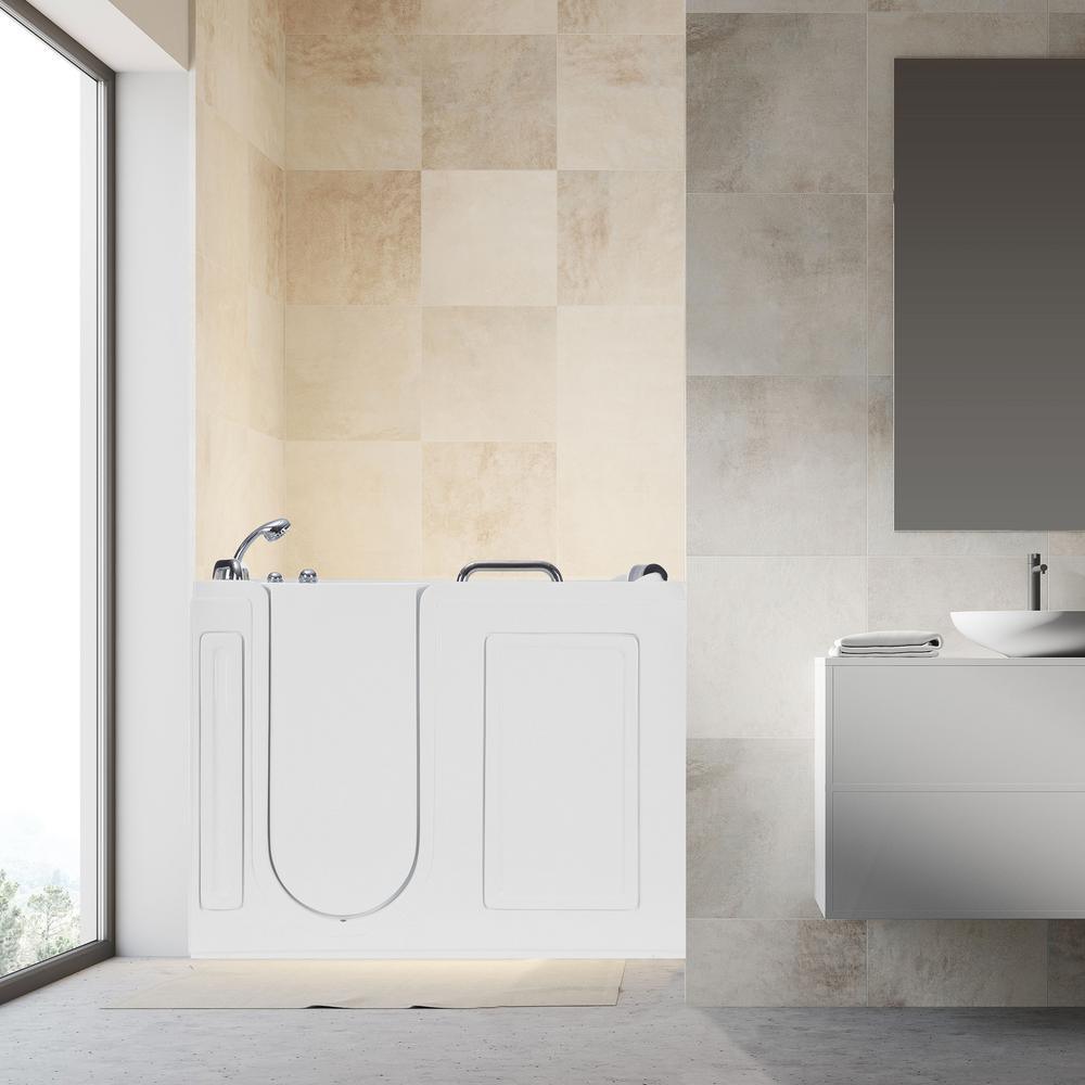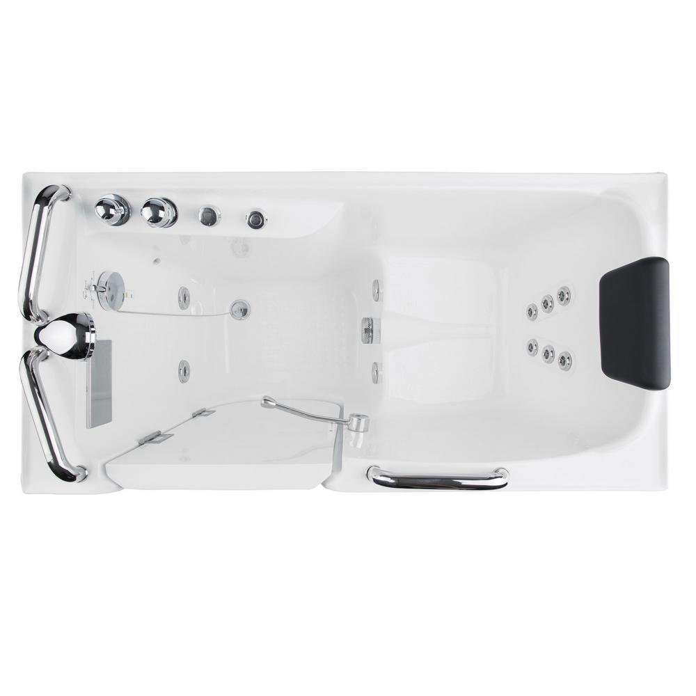 53 in. Left Drain Quick Fill Walk-In Whirlpool Bath Tub with Left Side Door in White