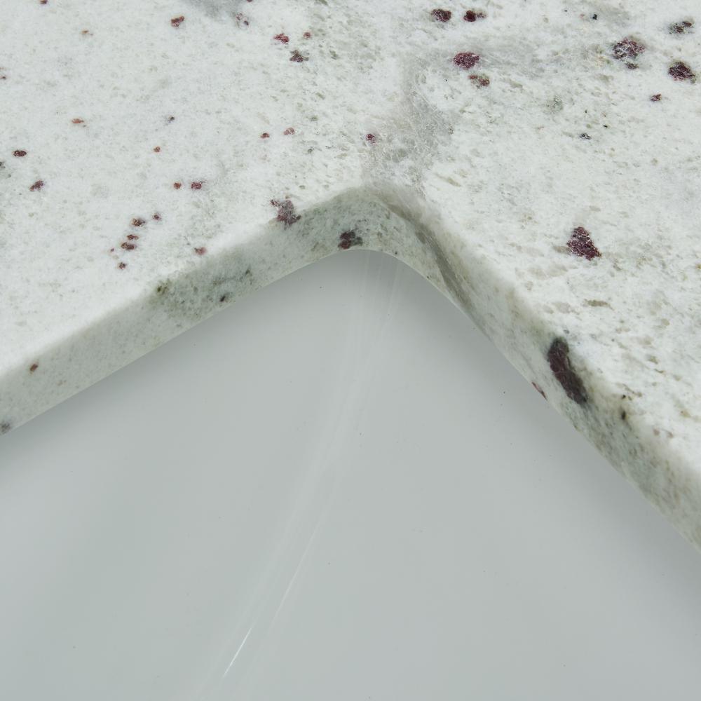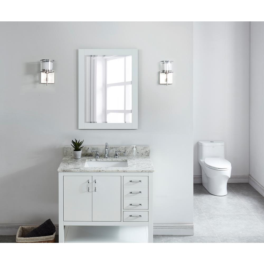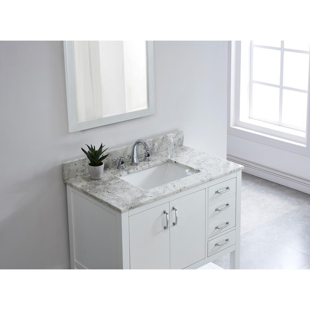 37 in. Glacier White Granite Top with Rectangular Undermount Sink in White. Attached stylish rectangular white vitreous china undermount bowl with safety overflow hole. 4 in. high backsplash included to help protect walls from water damage.