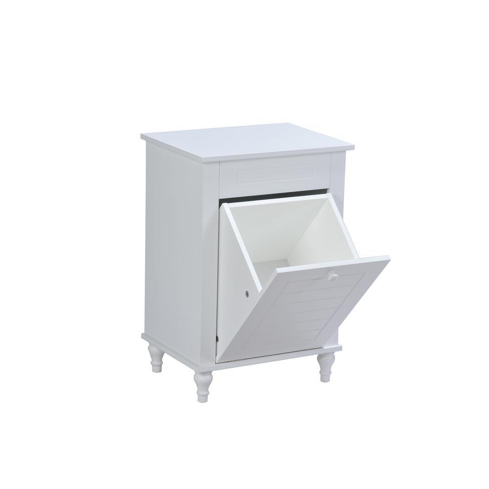 Surpassing the expectations of a laundry cabinet, this smart design slides open with a pull of the white knob and provides ample space for your laundry items. A spacious countertop is included for even more space. Measuring 16 in. x 12 in. x 23 in. this laundry cabinet fits nicely into your bathroom. A smooth white coating with solid wood carved legs and a durable MDF wood design will complement your space for a long time.