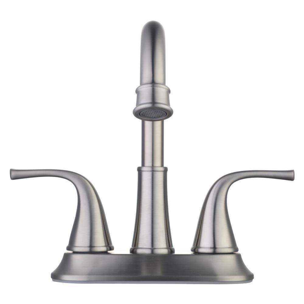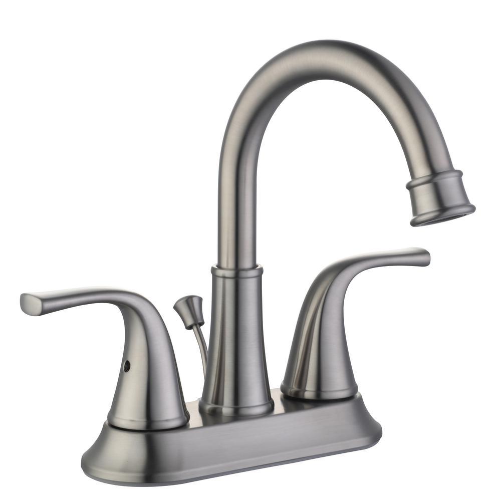 The Bettine 4 in. Centerset 2-Handle High-Arc Bathroom Faucet in Brushed Nickel by Glacier Bay provides a timeless appearance suitable for any interior design. With a 1.2 GPM water flow and ceramic disc cartridges, this faucet is WaterSense certified and environmentally friendly without compromising performance. The high-arc spout offers ample sink space, while the ClickInstall drain assembly ensures a hassle-free installation process. Its 2-handle lever design allows for easy handling and the durable physical vapor deposition finish guarantees a lifetime of use. This faucet is also backed by a limited lifetime warranty for added peace of mind.
