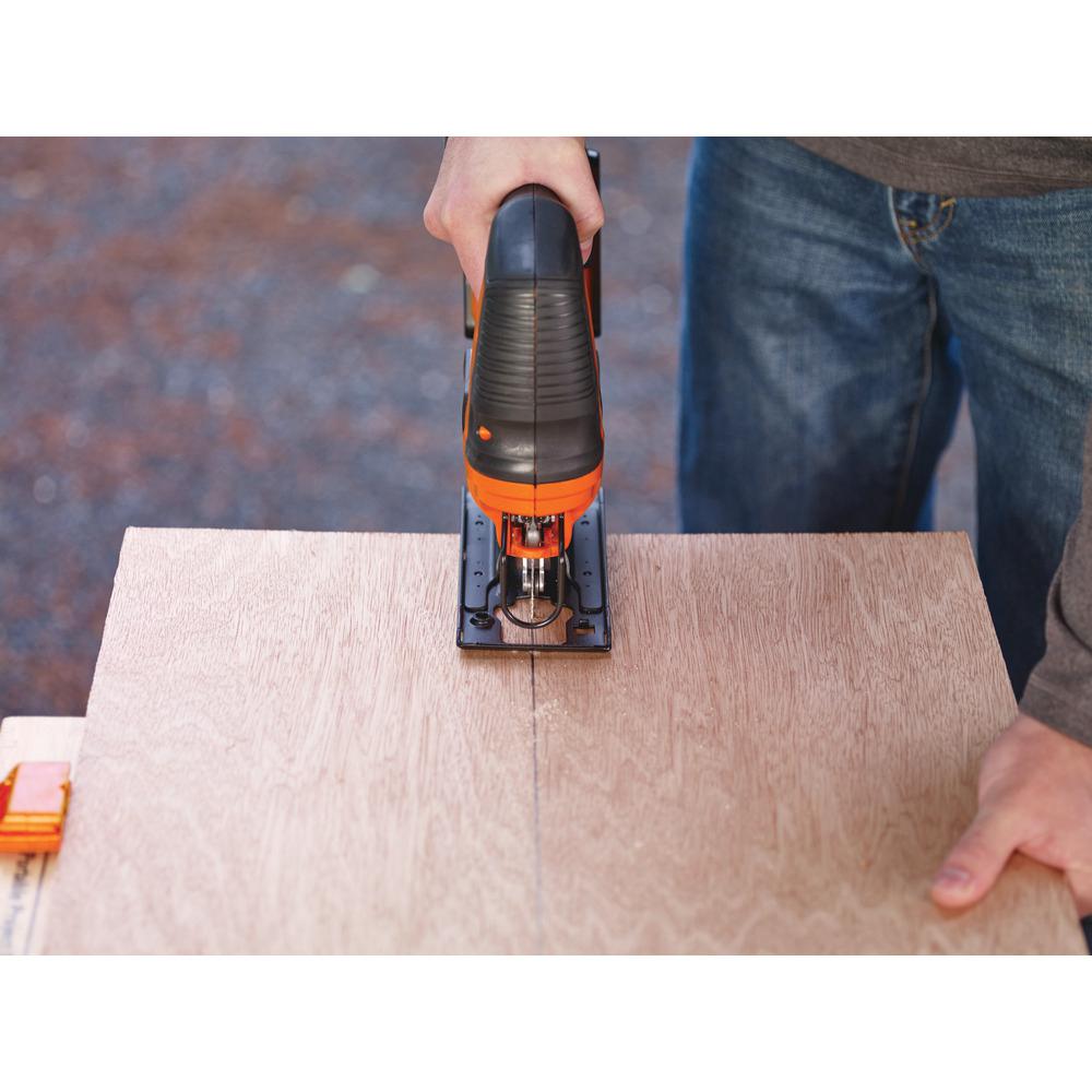 The BDCJS20C 20-Volt MAX Variable Speed Cordless Jigsaw delivers cutting versatility and compact portability. Take on projects with a powerful motor delivering 2500 RPM and the convenience of a cordless tool. Features tool-free blade change, making it easy to quickly change blades and get right back to your project. A built-in dust blower and clear line of sight help you make accurate detail cuts. Ideal for precise cuts in wood and a variety of other materials.