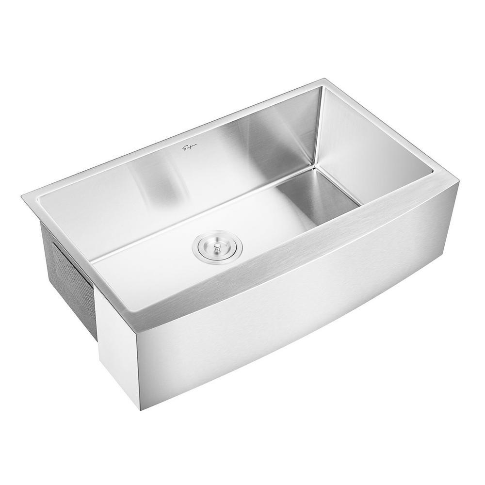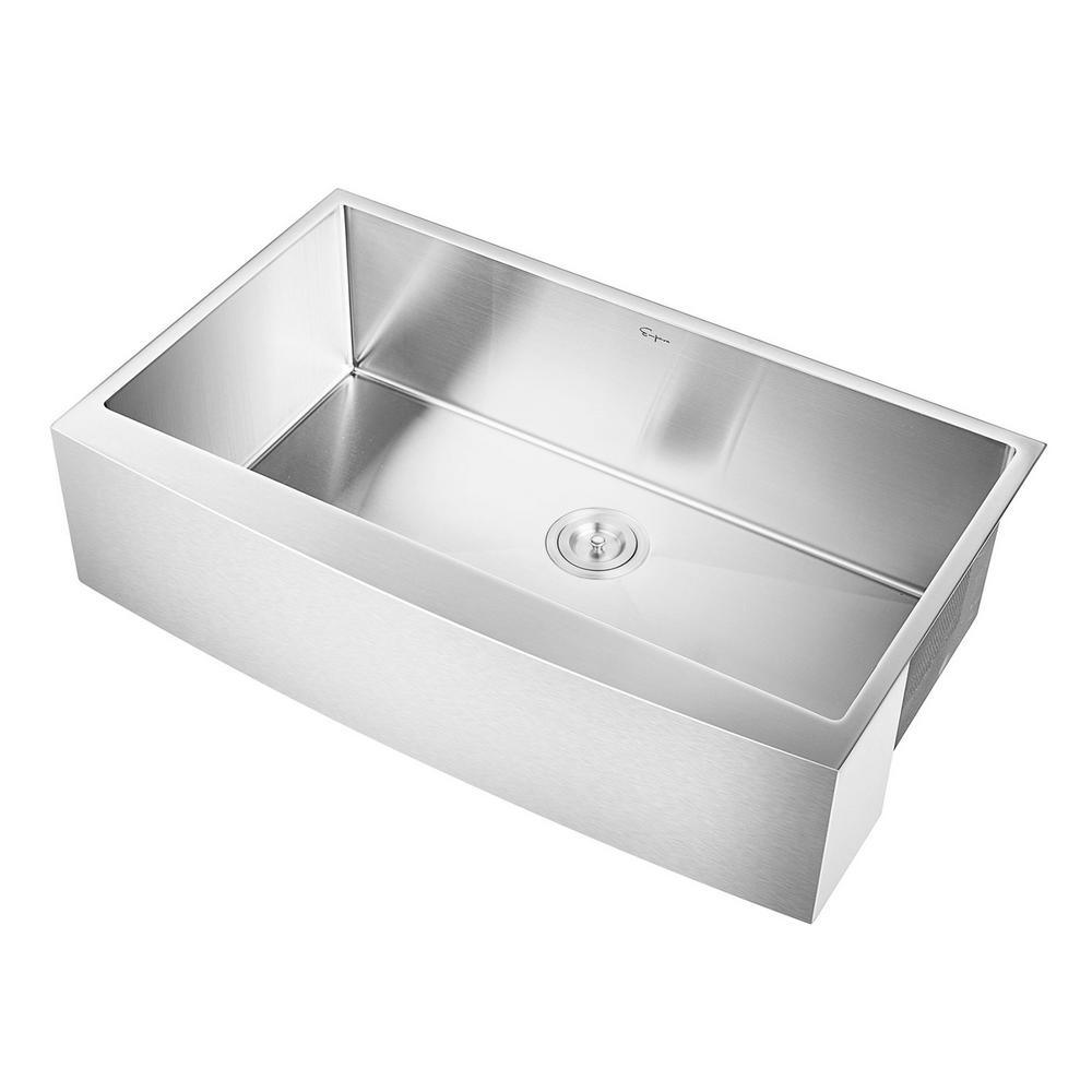 • Empava farmhouse kitchen single bowl sink is constructed with premium 16-gauge thick grade 304 stainless steel for exceptional resistance to corrosion and rust. Handcrafted brushed satin finish to prevent dents and scratches for long lasting use in your busy kitchen.
