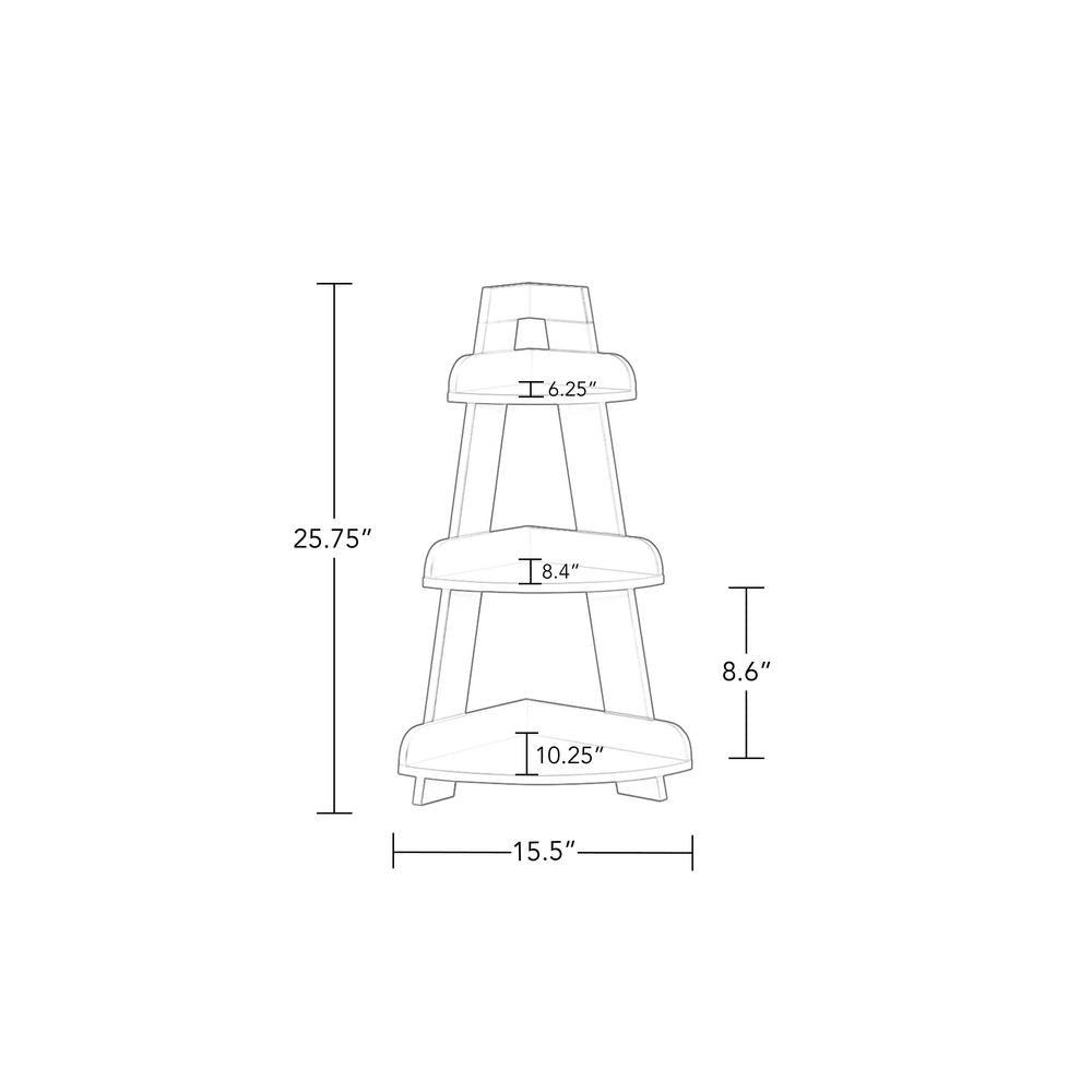 Keep your space neatly organized and show your favorite décor with this attractive RiverRidge Corner Ladder Wall Shelf. The petite design fits in tight spaces including bathrooms, laundry rooms, offices and more. Additional dimensions: open shelf 1: 6.5 in. L x 9.13 in. W x 6.25 in. D, open shelf 2: 8.44 in. L x 11.88 in. W x 8.38 in. D x 8.63 in. H, open shelf 3: 10.44 in. L x 14.63 in. W x 10.25 in. D x 8.63 in. H.