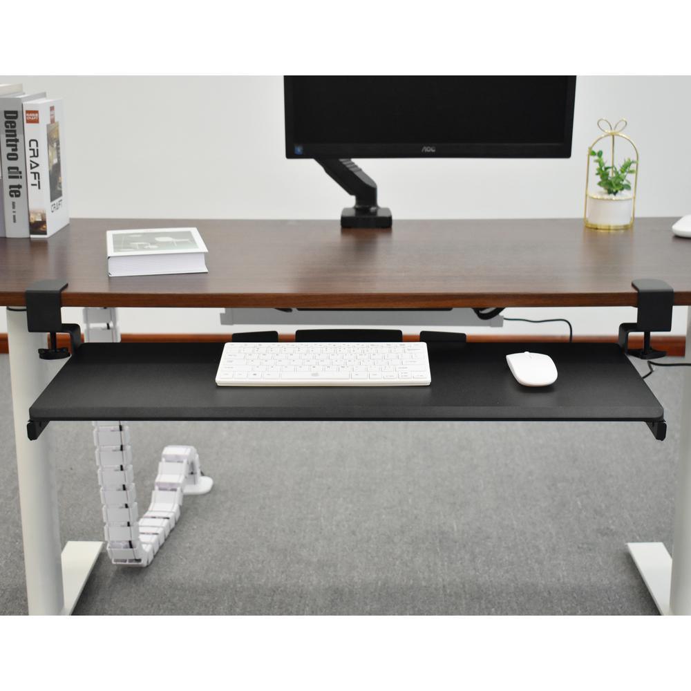 • EASY CLAMP-ON KEYBOARD TRAY – Simple C-clamp design attached easily to almost any size and style of computer desk, office cubicle, or electric standing desk. Soft pads protect your desktop from damage.