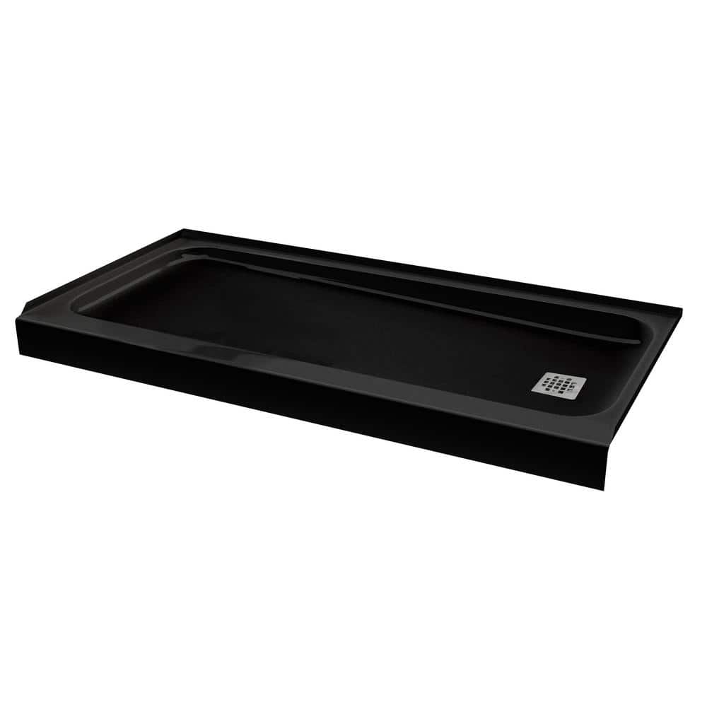 ShowerCast 60 in. x 32 in. Single Threshold Shower Pan in Matte Black with Square Chrome Shower Drain Cover Right Drain