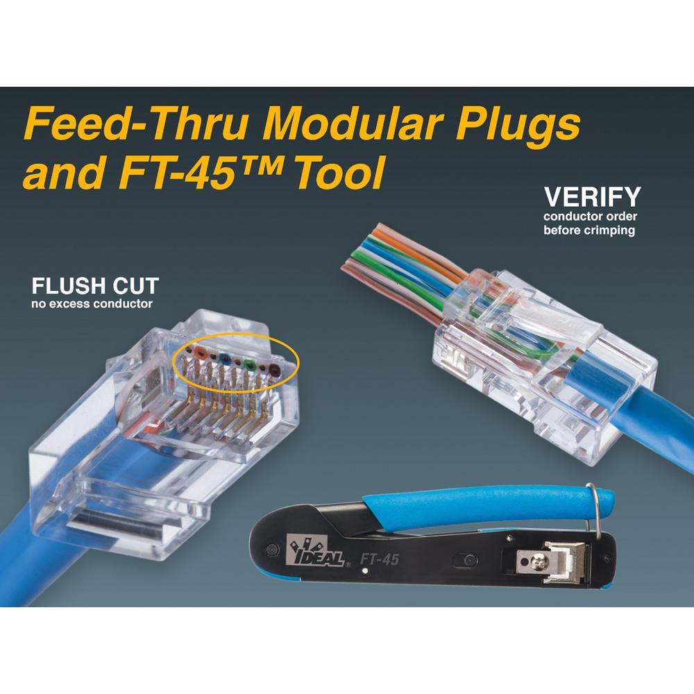 • Includes FT-45 feed-thru modular plug crimp tool (30-495), PrepPRO stripper (45-605), scissors (35-088) and pouch with clip
