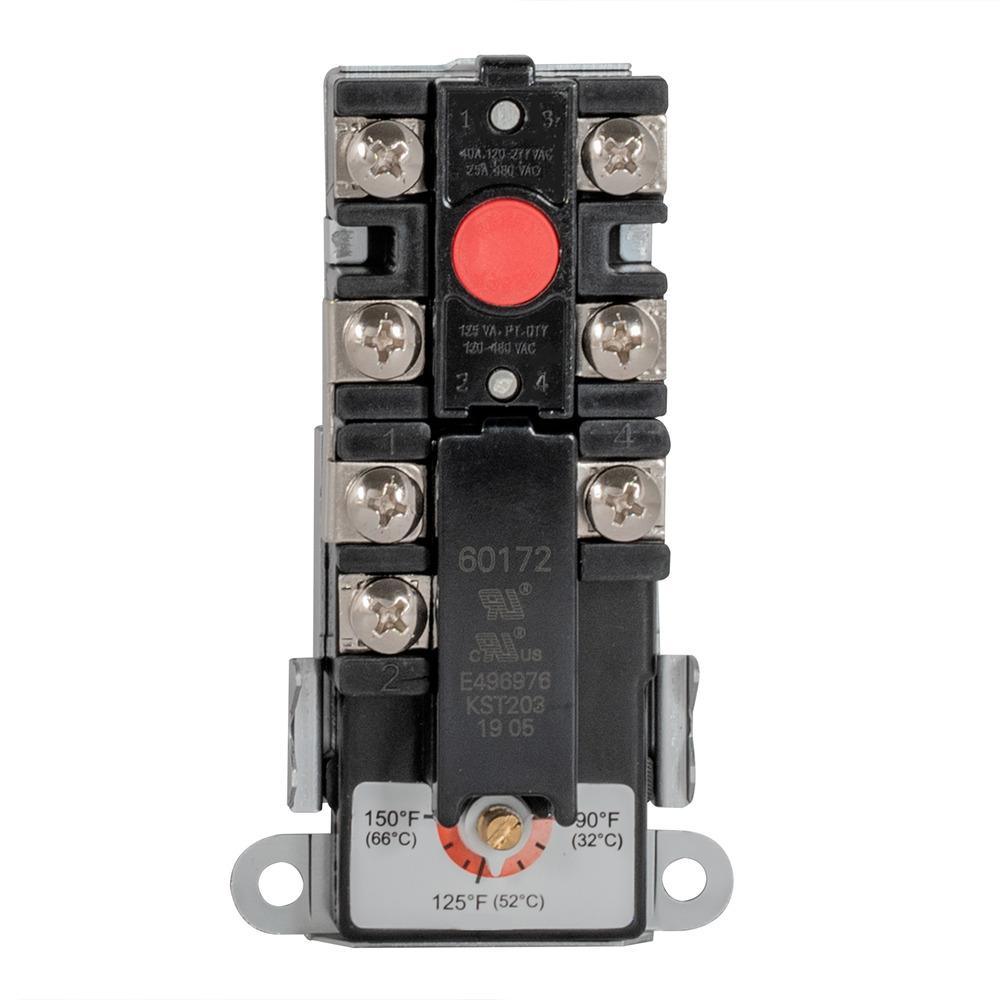 This replacement thermostat is designed for use with double element water heaters. It offers an energy-efficient adjustable temperature range from 90°F to 150°F. The Therm-O-Disc style thermostat is equipped with a built-in safety switch that prevents the water heater from overheating. UL Listed. Built for compatibility with most brands of water heater manufacturers.