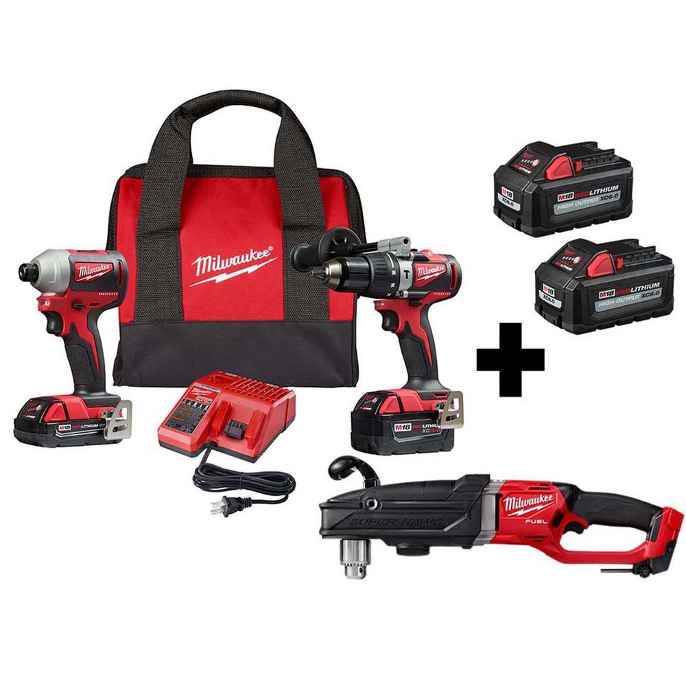 M18 18-Volt Lithium-Ion Brushless Cordless Hammer Drill/Impact/ Right Angle Drill Combo Kit (3-Tool) with 4-Batteries