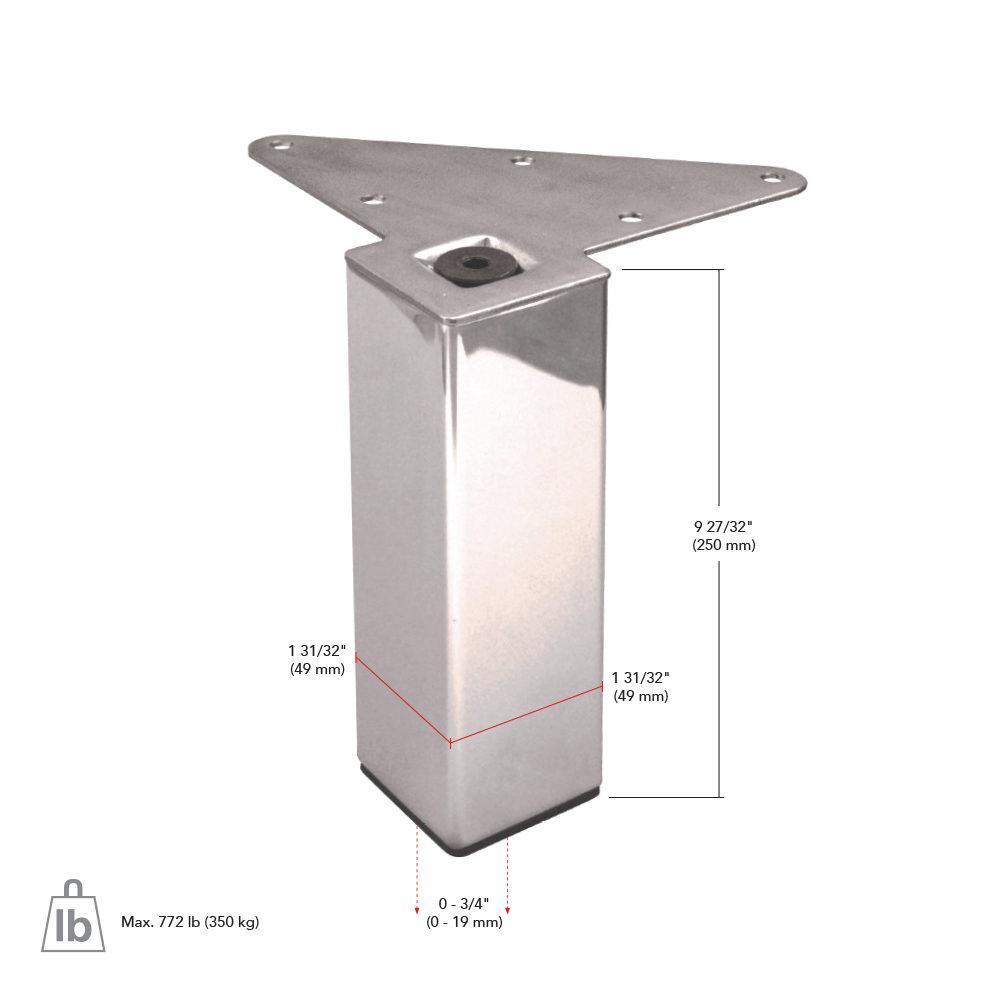 9-27/32 in. (250 mm) Stainless Steel Adjustable Furniture Leg (4-Pack)