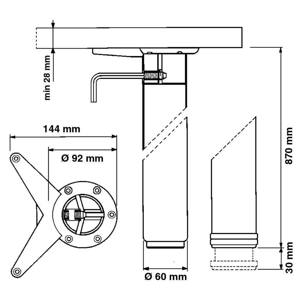 • Leg diameter x base diameter: 2-3/8 in. (60 mm) x 2-3/8 in. (60 mm)