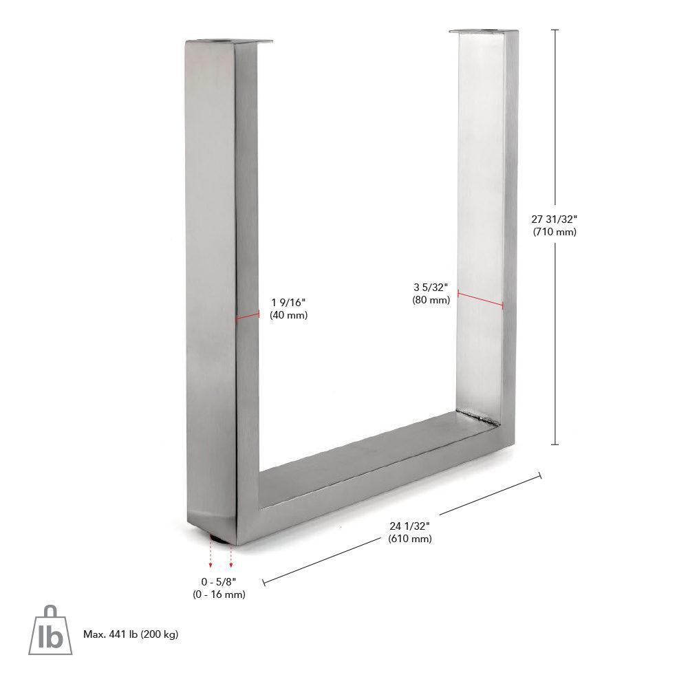 28 in. (710 mm) Stainless Steel Adjustable Legs for Structural Table (2-Pack)