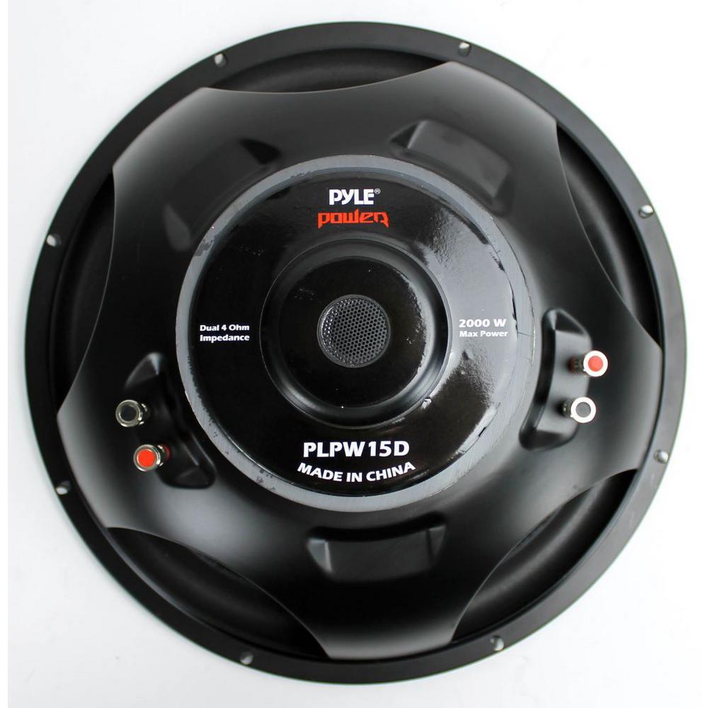 The Pyle PLPW15D is a 15 in., 2000 (8000-Watt per 4-pack) watt subwoofer designed with the bass lover in mind. This subwoofer will make your music growl in your vehicle or at home, in any type of enclosure: sealed, vented, or open air. The black steel basket and non press paper cone look sleek and the 95 oz. magnet, 2.5 in. 4 layer dual voice coil, and specially treated foam surround, make it sound great too.