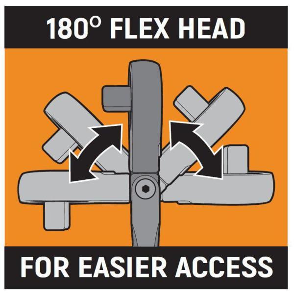 • Locking flex-head with 9 locked positions and unlocked option for adjustable access angle