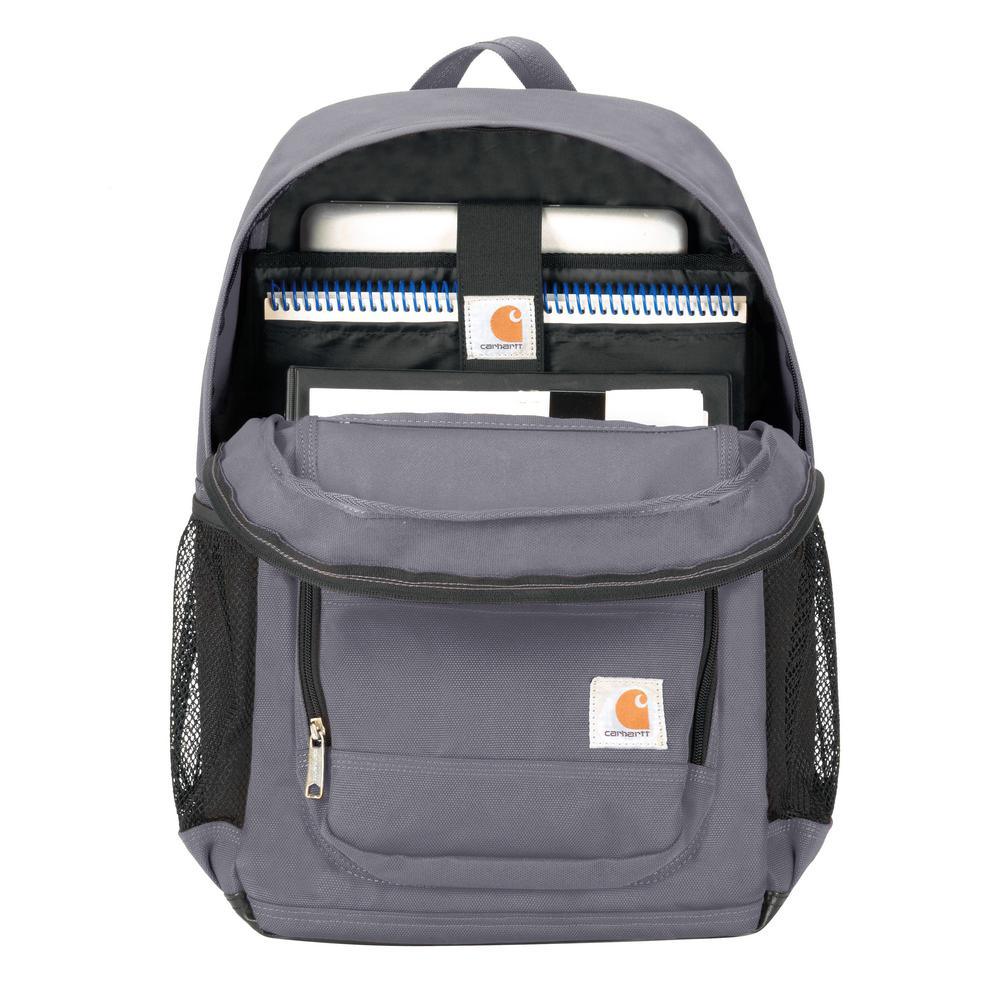 Normal 40-hour work weeks don't exist anymore and you need a pack that can match you step for step, minute by minute. Meet the Carhartt Legacy Standard Work Pack, your new right hand man. Built of heavy-duty 1200D Poly with Rain Defender durable water repellent. Set this bag down anywhere, no matter the terrain the Duravax abrasion-resistant base stands up to the test. This pack has 1 large, main compartment complete with a padded laptop sleeve as well as a spot for your tablet. 2 mesh pockets on the side are perfect for water bottles, work gloves and other gear. There are 2 zippered pockets on the front, the larger 1 has an organization panel inside with key fob, pen loops and smaller slash pockets. The padded, contour fit shoulder straps with daisy chains make hauling any load a breeze. Air mesh, padded back panel provides additional comfort. Additional Details: YKK zippers, metal hardware, triple needle stitching for reinforcement and Carhartt logo patch.