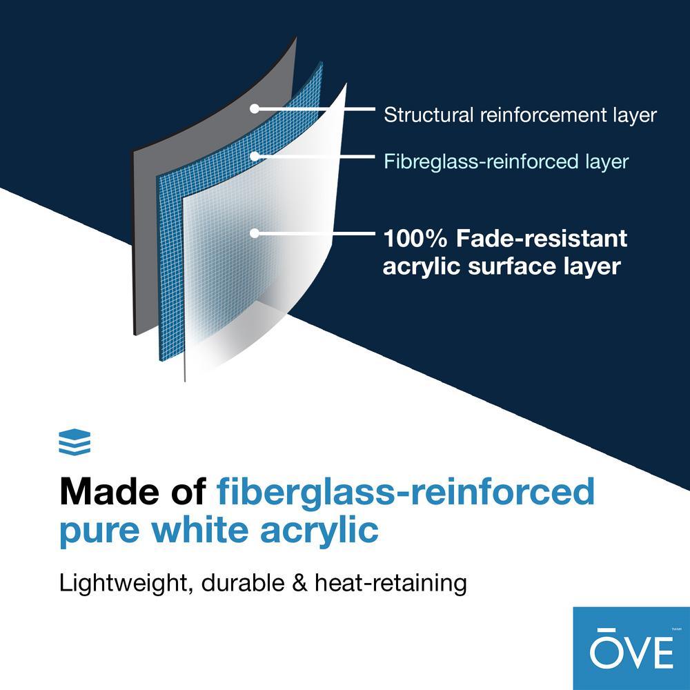 You'll be singing the praises of the gorgeous Lyra contemporary freestanding bathtub by OVE Decors. From its sleek oval design, modern gloss white finish and always warm to the touch seamless acrylic fabrication, the Lyra adds a stunning note to your bathroom renovation. Comfortable double backrests and an impressive 67-inch length allows plenty of room to stretch out in comfort, while enjoying over 64 gallons of soaking capacity. Hidden self-levelling feet, lightweight maneuverability and a pre-installed satin nickel pop-up drain will be music to your installer's ears.