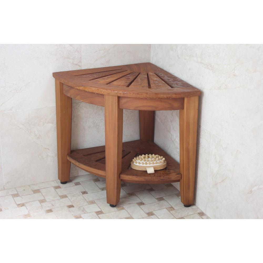 Save space with a corner teak bench, Add a beautiful touch of teak to your room, especially in smaller areas This space-saving design implements OptiAREA that conveniently fits snugly into any corner - perfect for the bathroom, patio, or poolside. Great for wet or humid environments (pools and bathrooms), Ideal in small spaces Slip-resistant rubber padded feet Second shelf for extra storage, Teak is a naturally water-resistant wood that fares well in wet and humid conditions. This teak corner bench was designed specifically with small spaces in mind and comes with rubber padded feet for slip-resistance and stability and an extra lower shelf for improved storage capabilities. Shop our premier teak bench today, Product Dimensions: 15.5 in. x 15.5 in. x 18 in. Product Weight: 13.5 lbs.