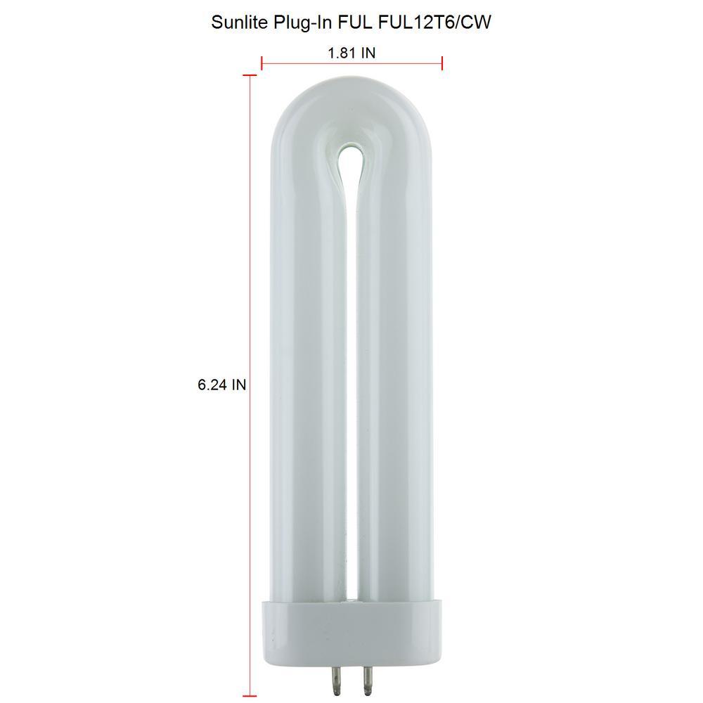 Sunlite 12-Watt FUL T6 bulbs feature a U-shaped twin tube design providing ample light in a compact space. 4-Pin GX10q base for use in many residential and commercial fixtures both indoors and outdoors. Output is a cool white light at 4100K. With a 5,000-hour life span these bulbs will last up to 4.6-year (based on 3hr/day use). Designed to work with a variety of indoor and outdoor fixtures in both residential and commercial applications.