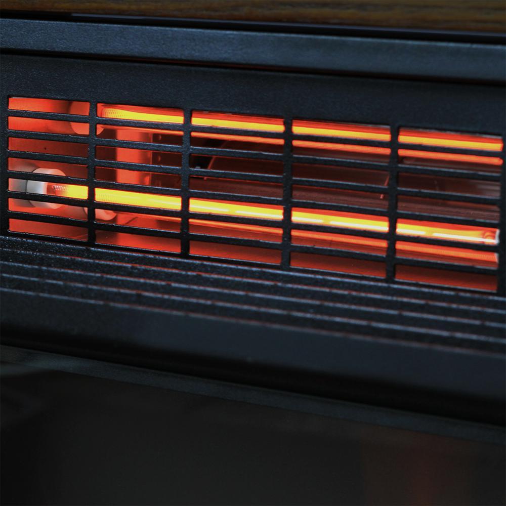 • 1500-Watt infrared quartz heater fireplace unit delivers up to 5,100 BTUs/hour, providing effective supplemental heating for up to 1000 sq. ft.