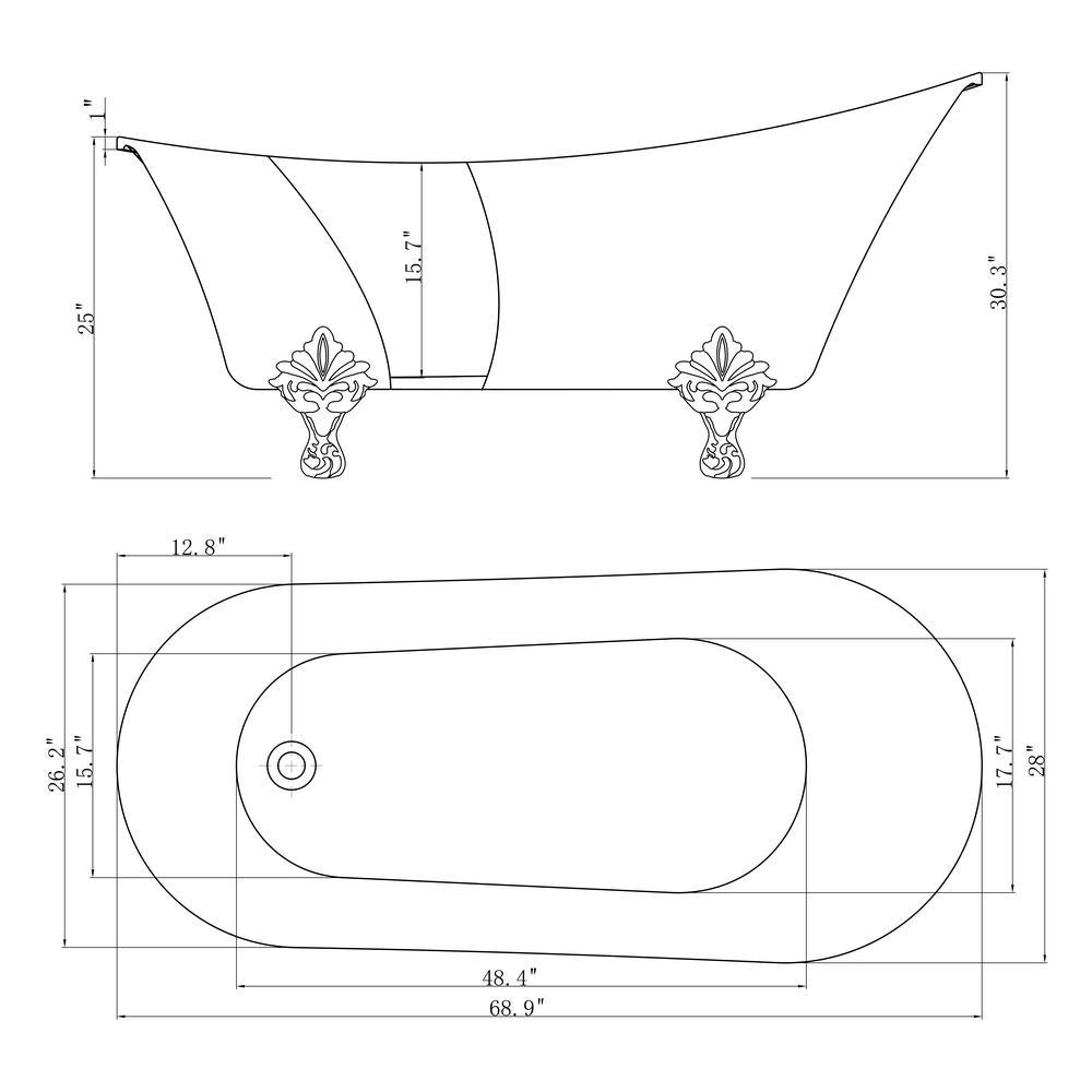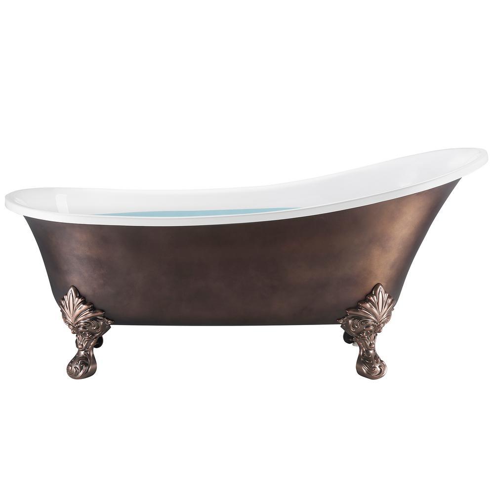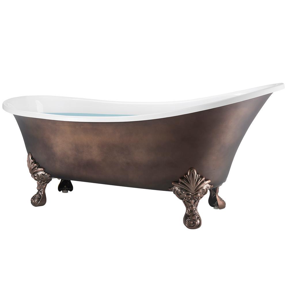 69 in. Acrylic Double Slipper Clawfoot Non-Whirlpool Bathtub in Matte Antique Brass