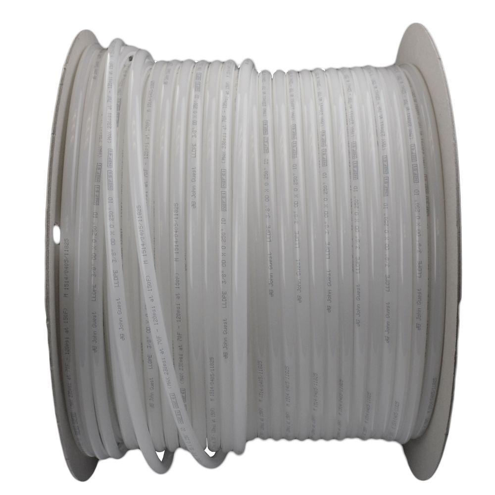 John Guest 3/8 in. LLDPE Polyethylene Tubing is ideal for use in a wide range of applications requiring low-temperature, flexibility, and durability. Common applications include: water purification, reverse osmosis systems, ice makers and misting systems, car wash systems, home/office coffee and beverage dispensing equipment, and pneumatic lines. It is suitable for a wide range of pressures and temperatures while providing substantial chemical resistance. LLDPE can be used with most O.D. tubing connectors including John Guest Push-to-Connect fittings and valves.