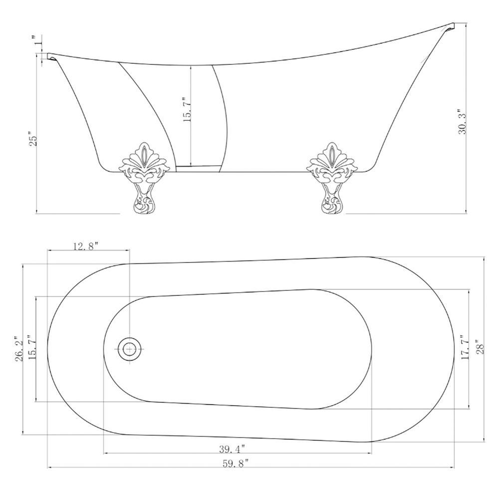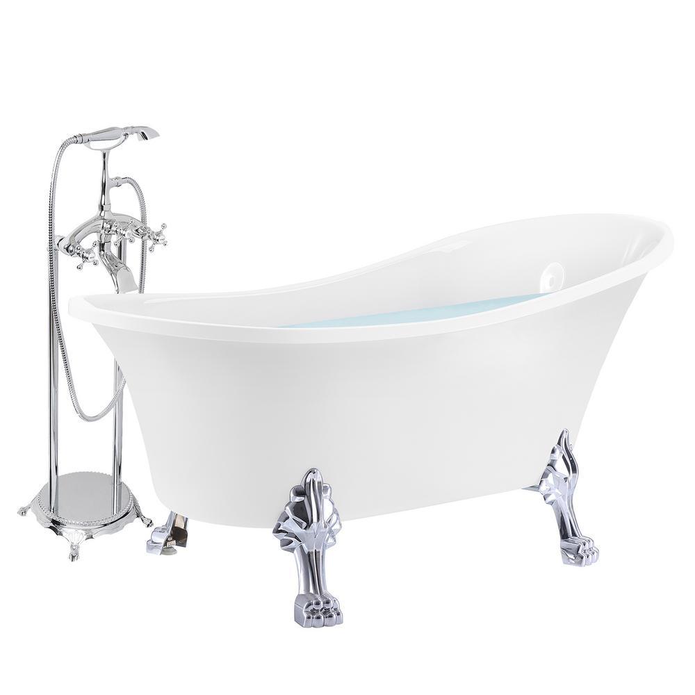 60 in. Fiberglass White Acrylic Clawfoot Tub for Bathtub with Tub Filler Combo - Modern Clawfoot Stand Alone Tub