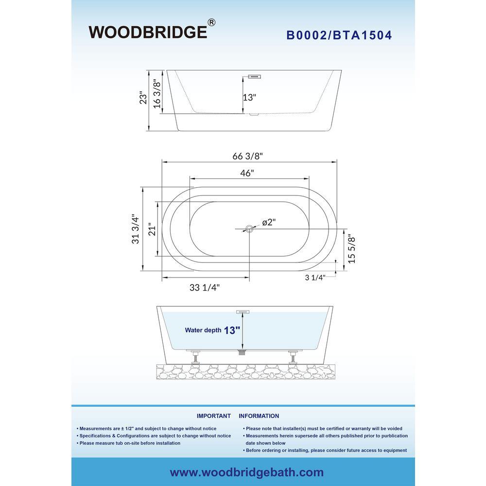 • ✅ [PREMIUM QUALITY CONSTRUCTION]: WOODBRIDGE bathtub is made out of 100% high gloss white LUCITE acrylic and reinforced with ASHLAND resin & fiberglass . All of these are top quality material which are rarely used by others due to a relatively high cost.