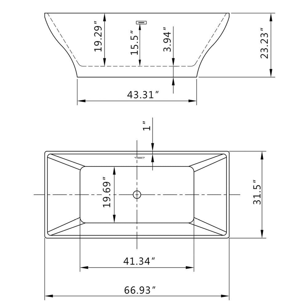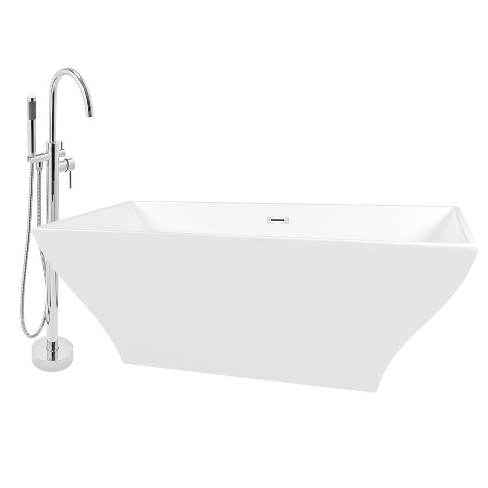 67 in. Fiberglass White Acrylic Tub for Bathtub with Tub Filler Combo - Modern Flat Bottom Stand Alone Tub