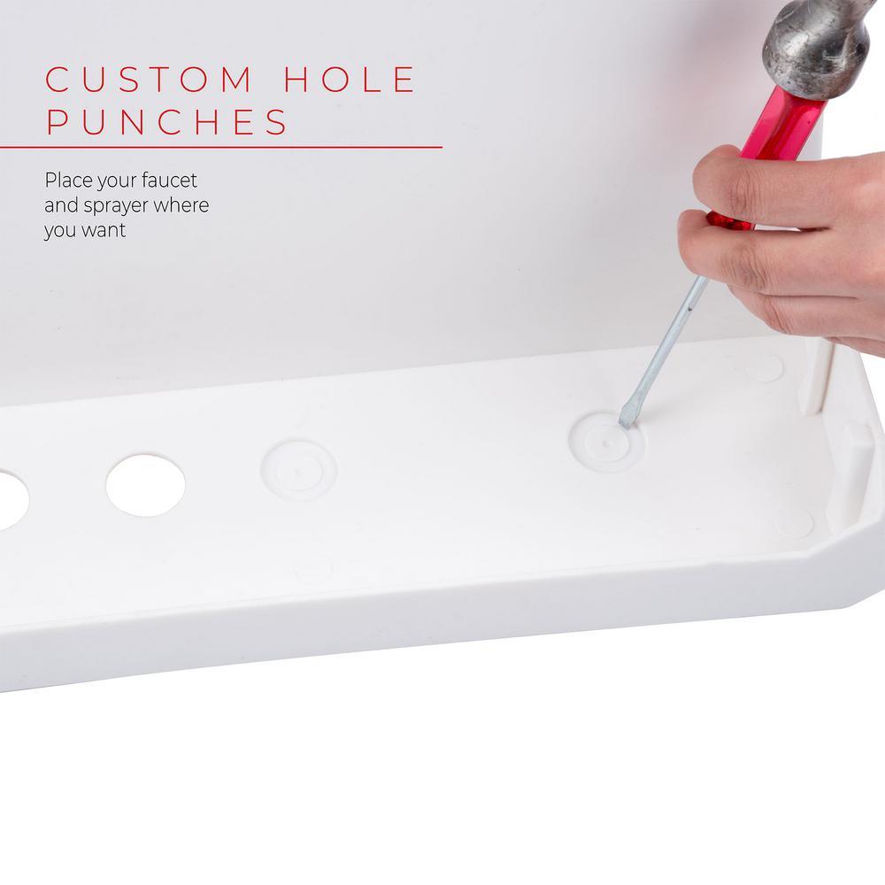 Multiple pilot holes allow for easy installation of your choice of other faucets and accessories, if desired