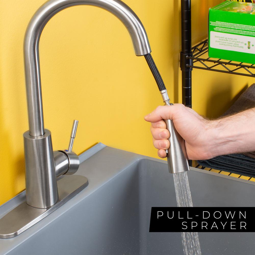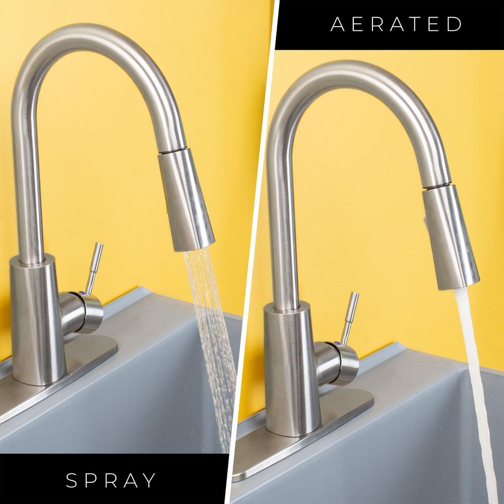 16 in. high-arc pull-down faucet with dual function spray or water stream