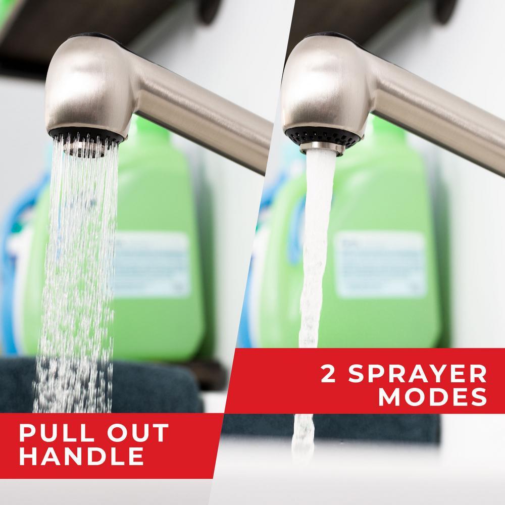 8.5 in. high chrome finish pull-out faucet is dual function for both spray and aerated
